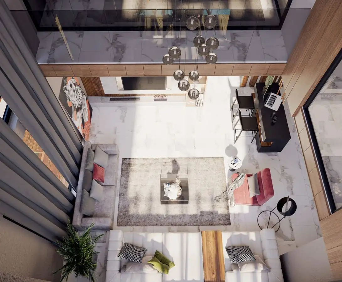 Внутри: К продаже представлены три виллы премиум класса с уникальным дизайном в современном стиле и планировкой 4+2. Каждая вилла имеет общую площадь 463 м2 - 678 м2 и состоит из 4 этажей.