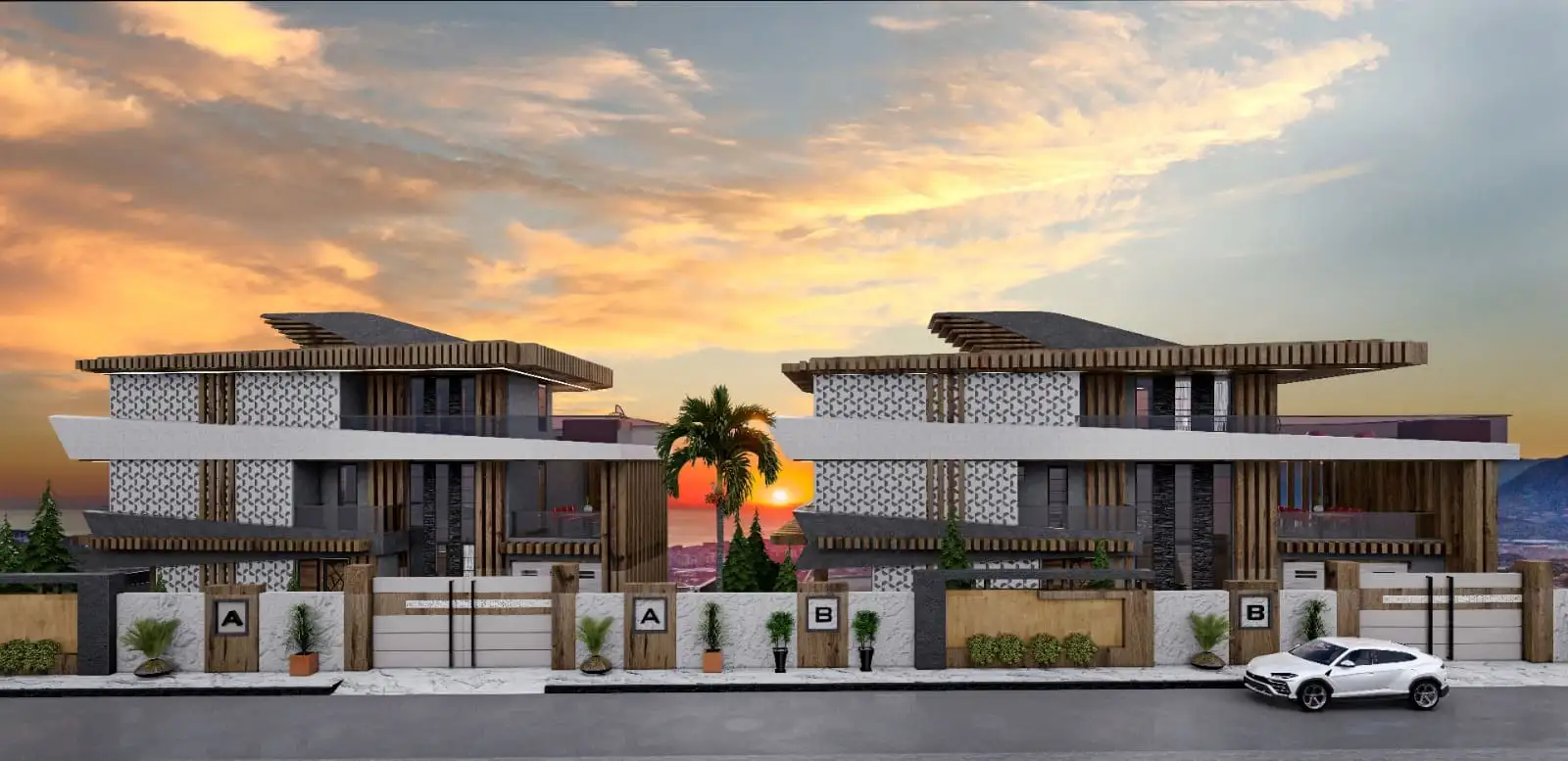 О строительстве: Комплекс строится с применением технологий последнего поколения и материалов класса «люкс». Одна вилла имеет участок 626 м², общая площадь 1 000 м²; вторая - участок 617 м², общая площадь 900 м². Каждая вилла спроектирована в формате 5+1, но планировка может быть адаптирована под пожелания покупателя. Проект предусматривает 4 жилых уровня, объединённых лифтом, с просторными террасами, панорамными окнами, открытым и крытым бассейнами, сауной, хамамом и фитнес-зоной. Каждая деталь продумана до мелочей — от инженерных решений до эстетики фасада. Виллы продаются на этапе строительства с возможностью внесения индивидуальных изменений и персонализации пространства.