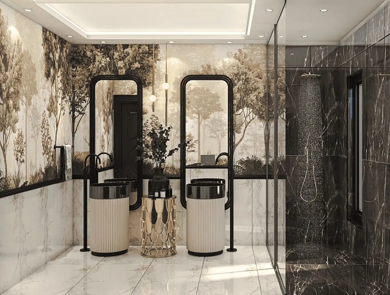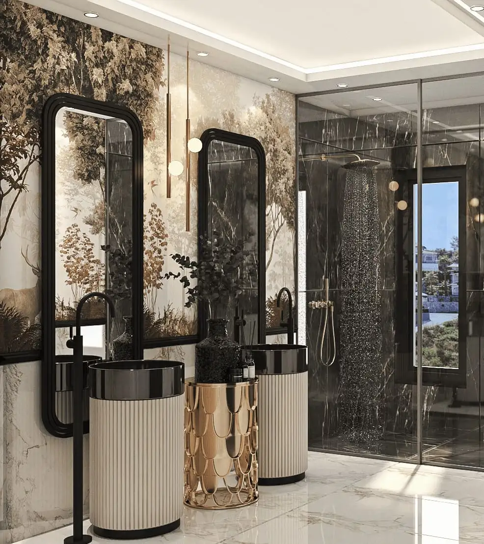 Внутри: Пространство каждой виллы продумано так, чтобы создать баланс между роскошью и уютом: большая гостиная с панорамными окнами во всю высоту и камином; кухня с обеденной зоной и выходом на террасу; 5 спален, каждая с личным санузлом и гардеробной, главная спальня — с джакузи и частной террасой 115 м², зоны отдыха, кинотеатр, спортивный зал и SPA-этаж.