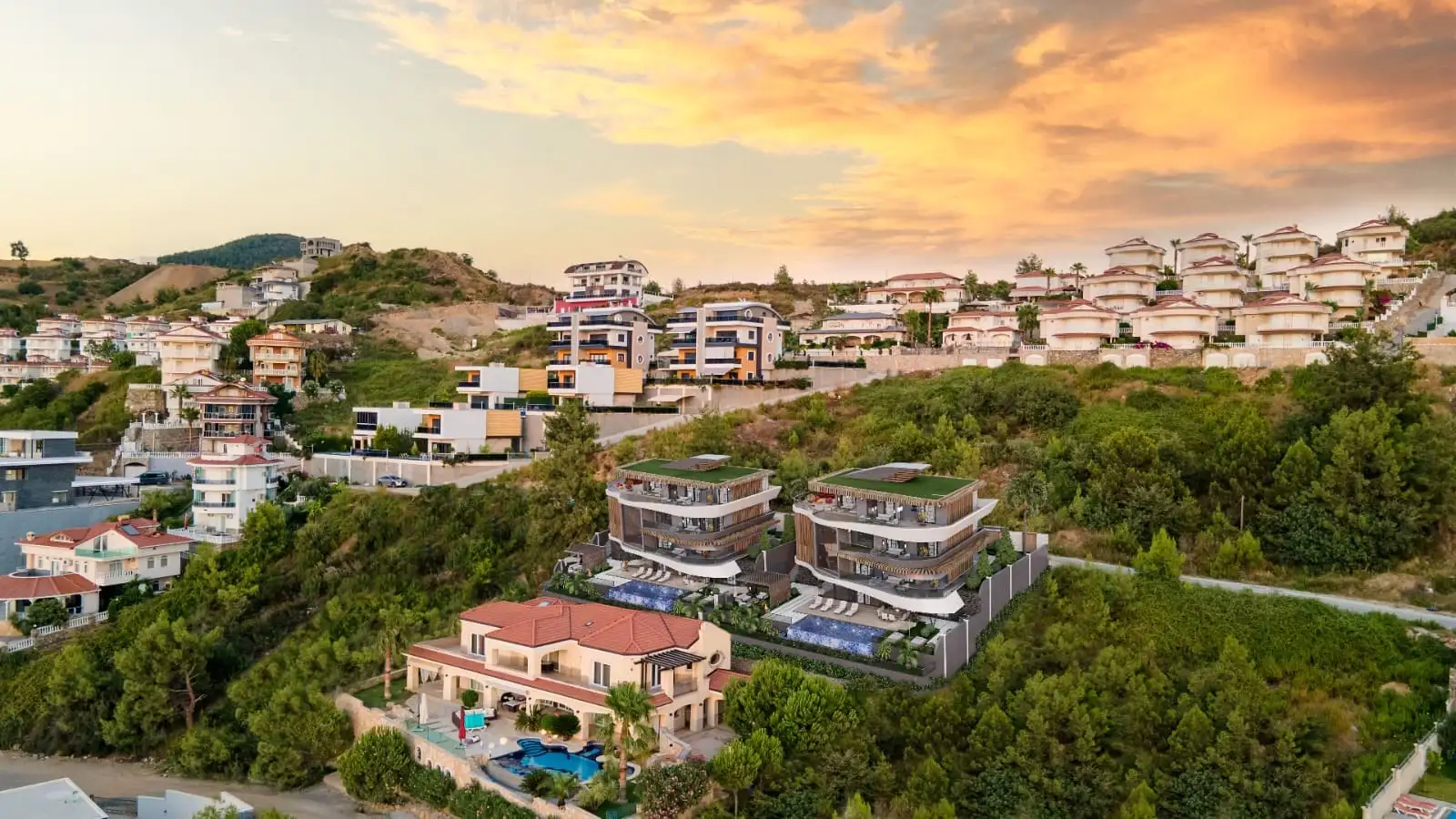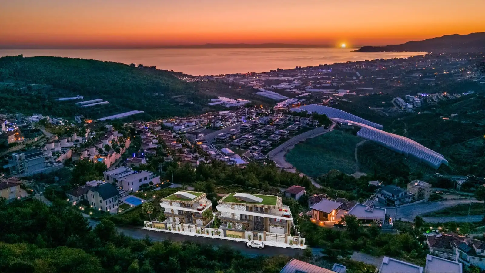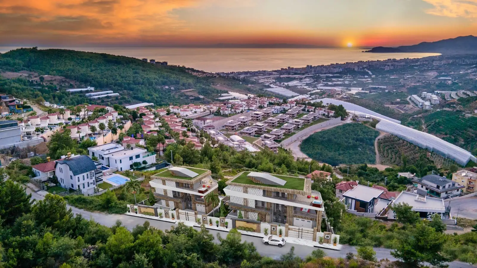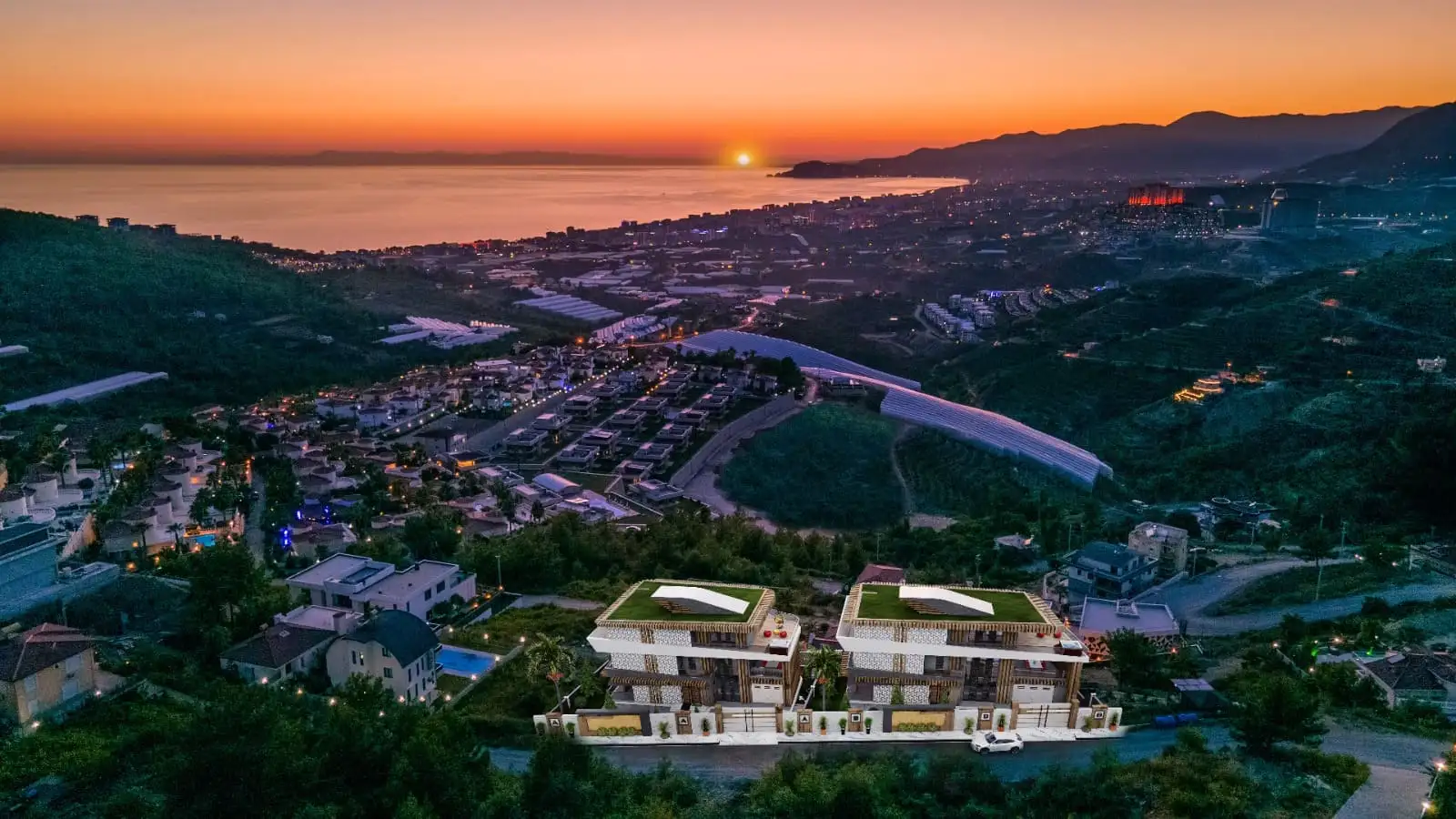 Что рядом: В непосредственной близости находятся: рестораны с панорамными видами, супермаркеты, фермерские рынки, школы, медицинские учреждения и объекты городской инфраструктуры. Центр Аланьи и пляж Клеопатры находятся всего в 10–15 минутах езды. Виллы граничат с зелёной парковой зоной, что гарантирует приватность и вид, который никогда не будет застроен.