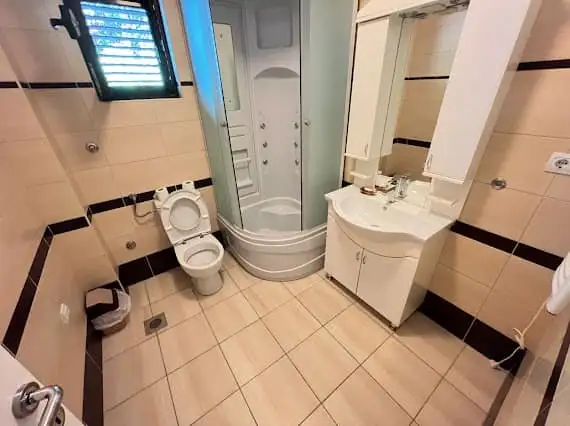 Эксклюзивная большая вилла в Будве возле моря, вид на море. Вилла состоит из 17 помещений на 4 этажах, в том числе: - столовая, гостиная, холл, кухня, детская, кладовая, - 6 спален с двуспальными кроватями, 3 спальни с односпальными кроватями, - гараж и техническое помещение. На вилле 6 ванных комнат с душевыми кабинами. Во всех ванных комнатах есть душ, умывальник, унитаз, шкафчик для принадлежностей. Все номера имеют собственные балконы. Жилая площадь - 358 кв.м. Балконы - 77 кв.м. Терраса и сад - 265 кв.м. Расположение помещений и зон отдыха по этажам: 1 этаж - Гараж - Техническое помещение (прачечная со стиральной машиной, котельная). 2 этаж - Гостиная с камином и выходом на террасу и в сад - Кухня - Обеденная зона с выходом на террасу и в сад - Игровая комната с выходом на террасу и в сад - Комната для няни или горничной - Ванная комната - Терраса - Сад - Мангал - Тех.домик для садовых принадлежностей (в саду). 3 этаж - 1 изолированный двухместный номер с санузлом. - 1 изолированный блок номеров, состоящий из 1 двухместной и 1 одноместной комнаты и 1 санузла. - 2 двухместных номера имеют один санузел (с входом через коридор). 4 этаж - 1 изолированный двухместный номер с санузлом. - 1 изолированный блок номеров, состоящий из 1 двухместной и 1 одноместной комнаты и 1 санузла. - гостиная с диванами и выходом на большой балкон с видом на море и старый город.