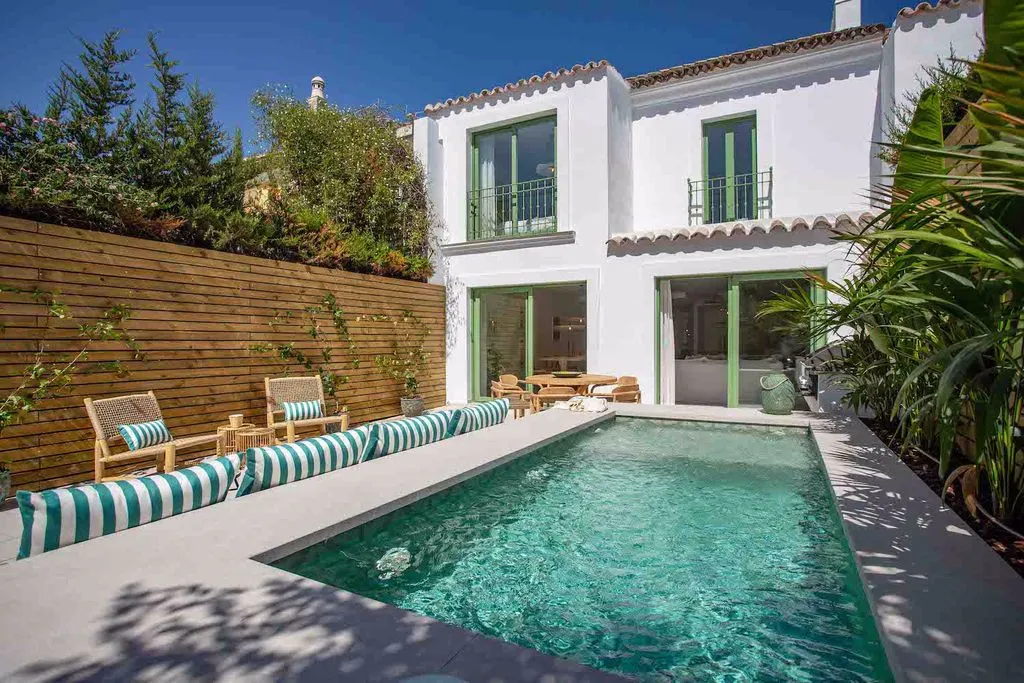 Отремонтированный таунхаус на берегу моря с частным бассейном Добро пожаловать в этот 2-этажный таунхаус в лучшем месте Сан-Педро-де-Алькантара - всего в 500 метрах от пляжа и нескольких ресторанов и магазинов на вашем пороге. Таунхаус был отремонтирован по высоким стандартам с большим вниманием к деталям, чтобы создать уникальную атмосферу и стиль. Жилая площадь распределена на двух этажах плюс подвал и гараж. На входе находится большая кухня открытой планировки, соединяющаяся со столовой и гостиной с высокими потолками, окнами, выходящими в сад, и каменными стенами. Окна выходят в сад и на террасу с частным бассейном, солярием, душем на открытом воздухе и барбекю для обедов на свежем воздухе. На верхнем этаже дома расположены 4 спальни, включая главную спальню. В главной спальне высокие потолки, большие окна с видом на бассейн и сделанная на заказ открытая гардеробная из белого лакированного дуба. Из нее можно попасть в ванную комнату, отделанную травертиновым камнем. Большая двойная раковина, двойной душ с латунными деталями. Три спальни для гостей имеют большие размеры, двуспальные кровати и встроенные шкафы из беленого дуба. Все три гостевые спальни делят общую ванную комнату, выполненную по индивидуальному проекту из травертина с подогревом пола. В подвале находится прачечная и прямой доступ к подземному гаражу на 2 машины. На территории комплекса находится сад с общим бассейном. За пределами сообщества есть несколько ресторанов и баров, а также большой