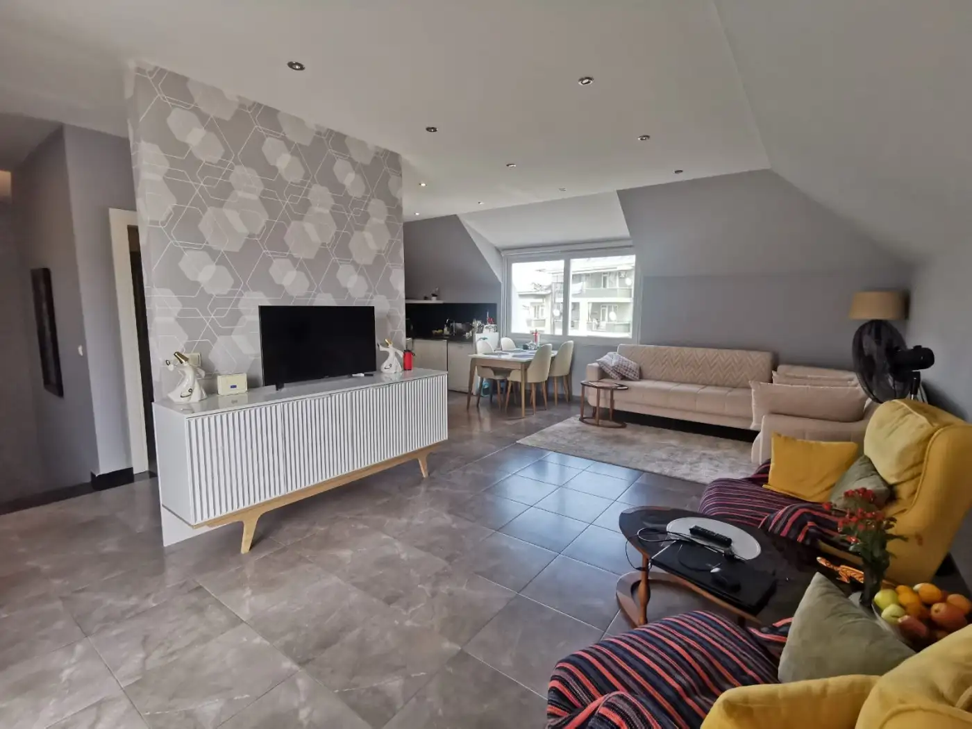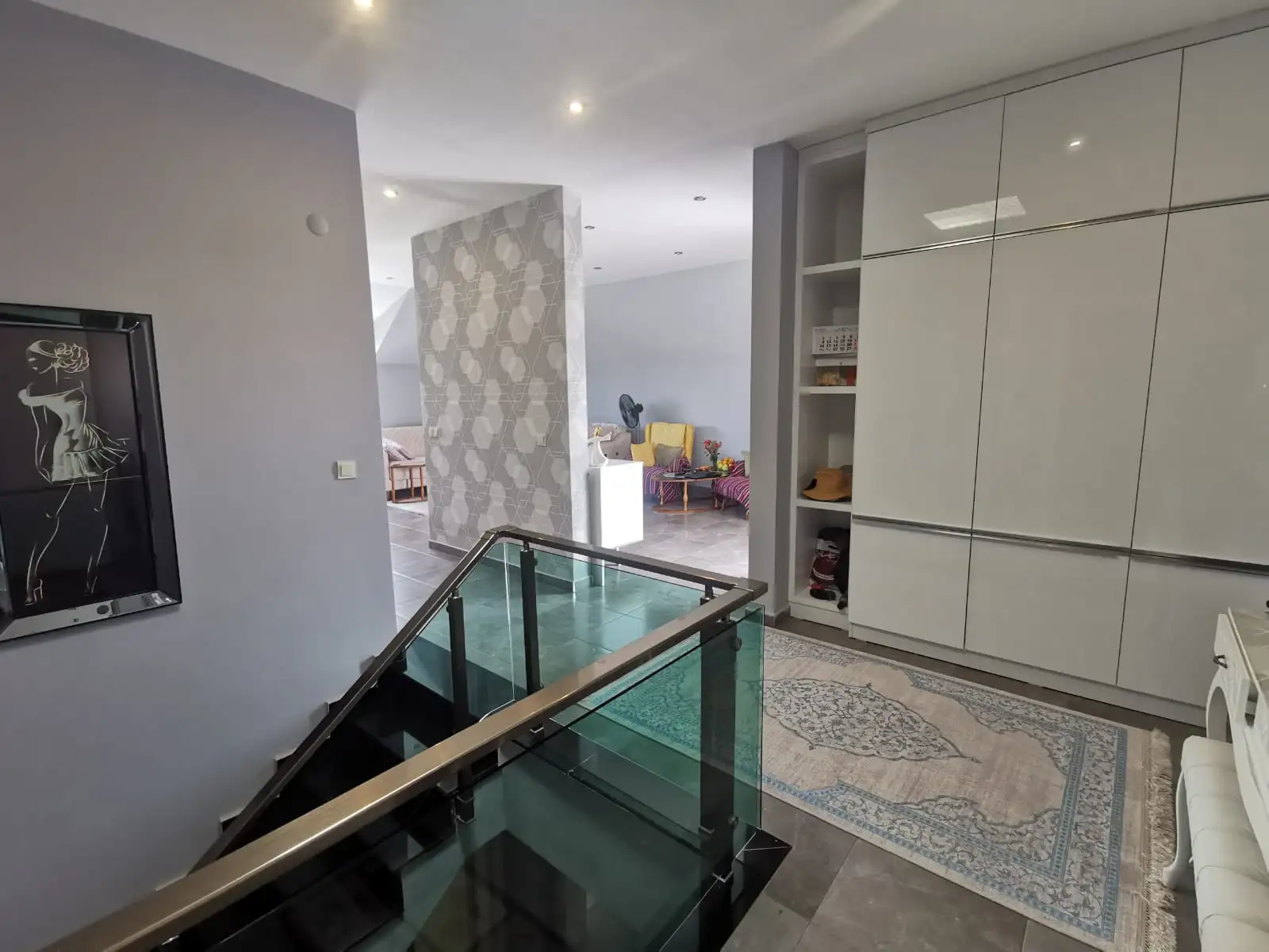Внутри: Дуплекс продается с мебелью, выполнен качественный ремонт, а просторные комнаты наполнены естественным светом благодаря большим окнам. Балконы открывают вид на город и горы, создавая атмосферу уюта и спокойствия.