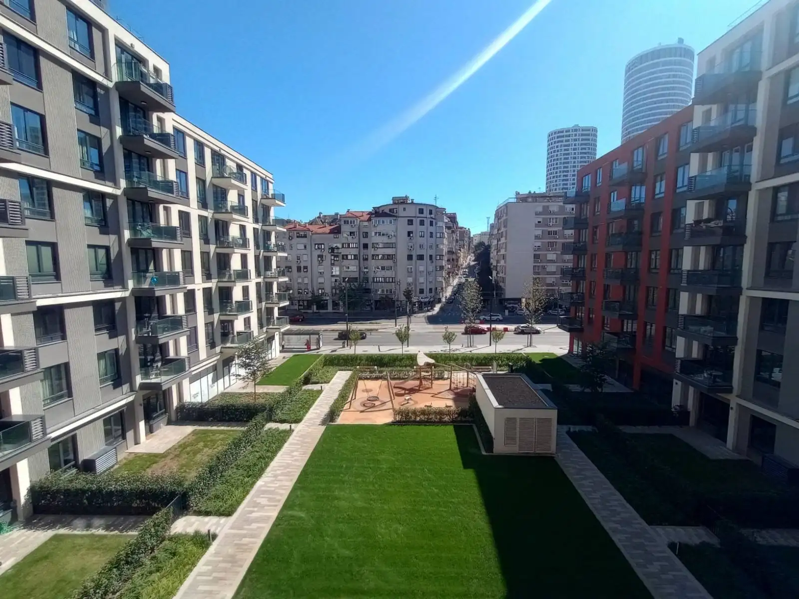 Новая квартира общей площадью 73,8 м² расположена на 4-м этаже современного здания BW Eterna, в динамичном районе (Белград на воде) с множеством ресторанов, кафе и магазинов, парков. Квартира наполнена естественным светом и предлагает фантастический вид на панораму старого города. Окна выходят во внутренний двор (в сторону улицы Савска). Торговый центр Galerija (один из самых больших в Европе) и Савская набережная находятся в нескольких минутах ходьбы. В квартире имеются кондиционеры, современная система отопления. Есть возможность приобрести парковочное место за дополнительную плату на минус первом этаже здания.