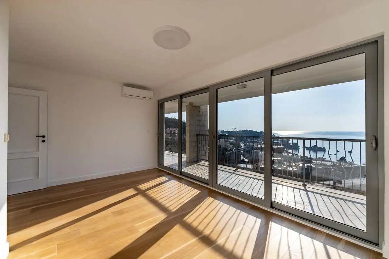 Великолепный пентхаус с изумительным панорамным видом на море, горы и очаровательную рыбацкую деревню Пржно. Всего в 5 минутах ходьбы от одного из самых красивых пляжей Черногории и парка Милочер.
