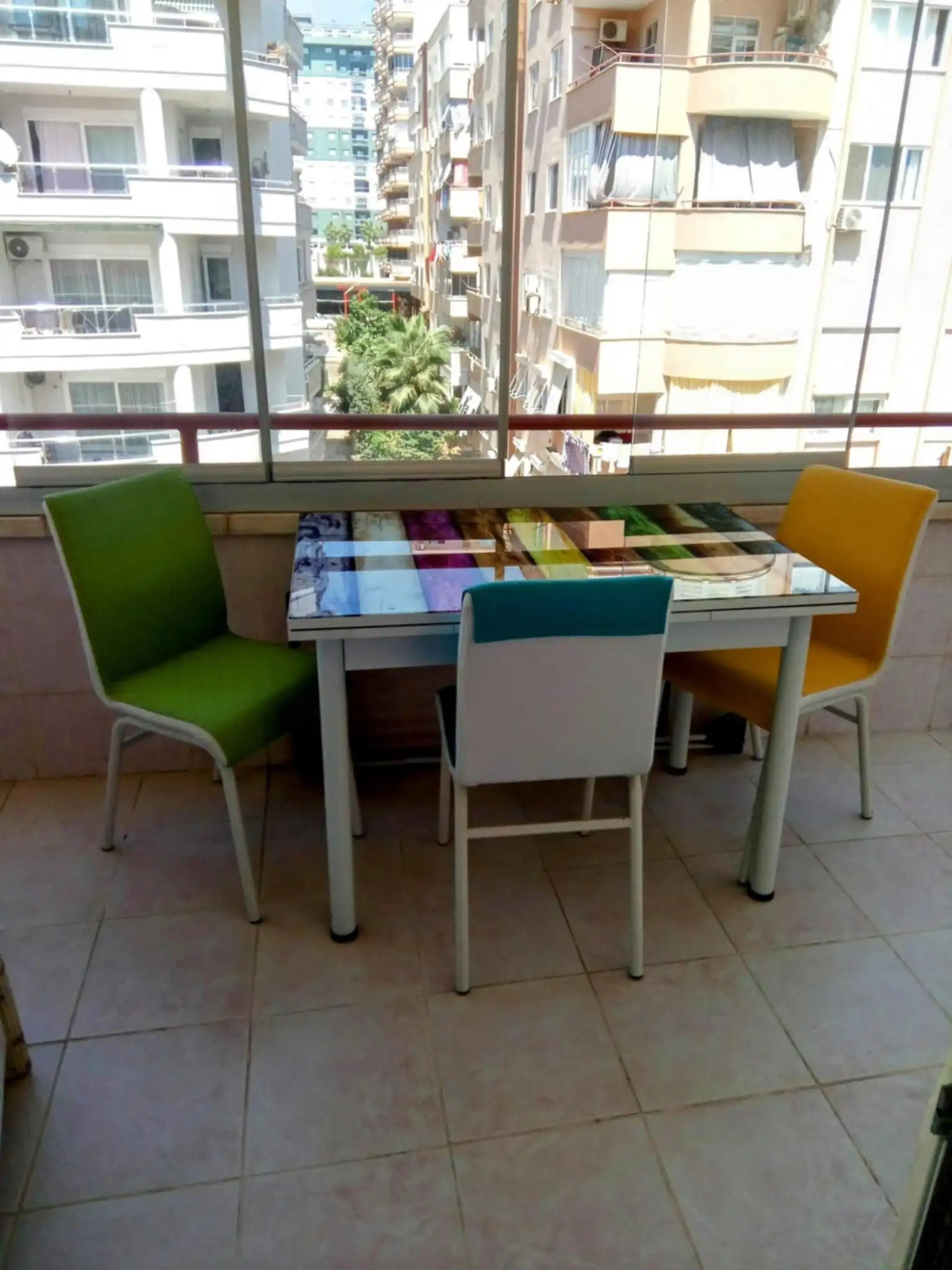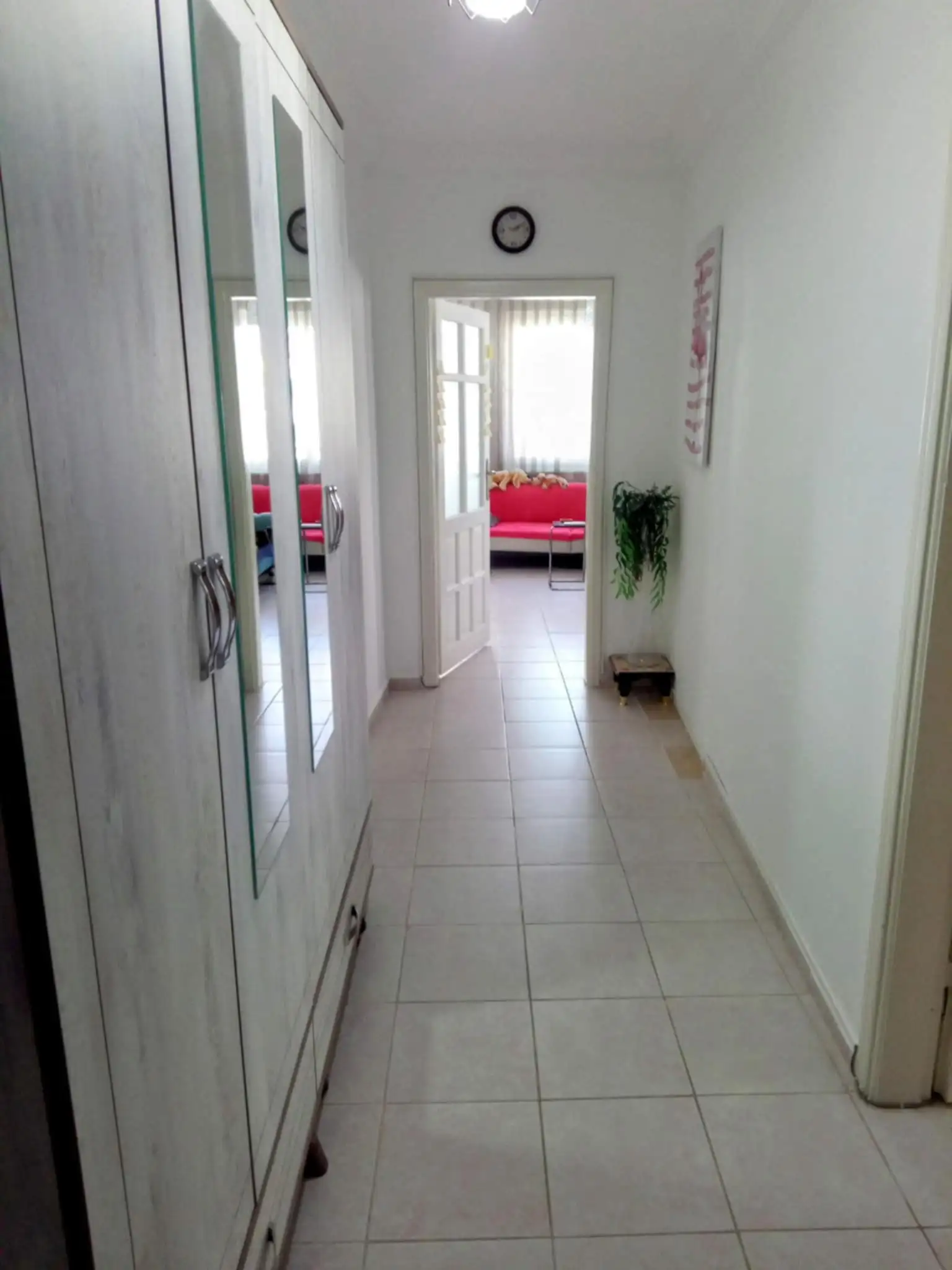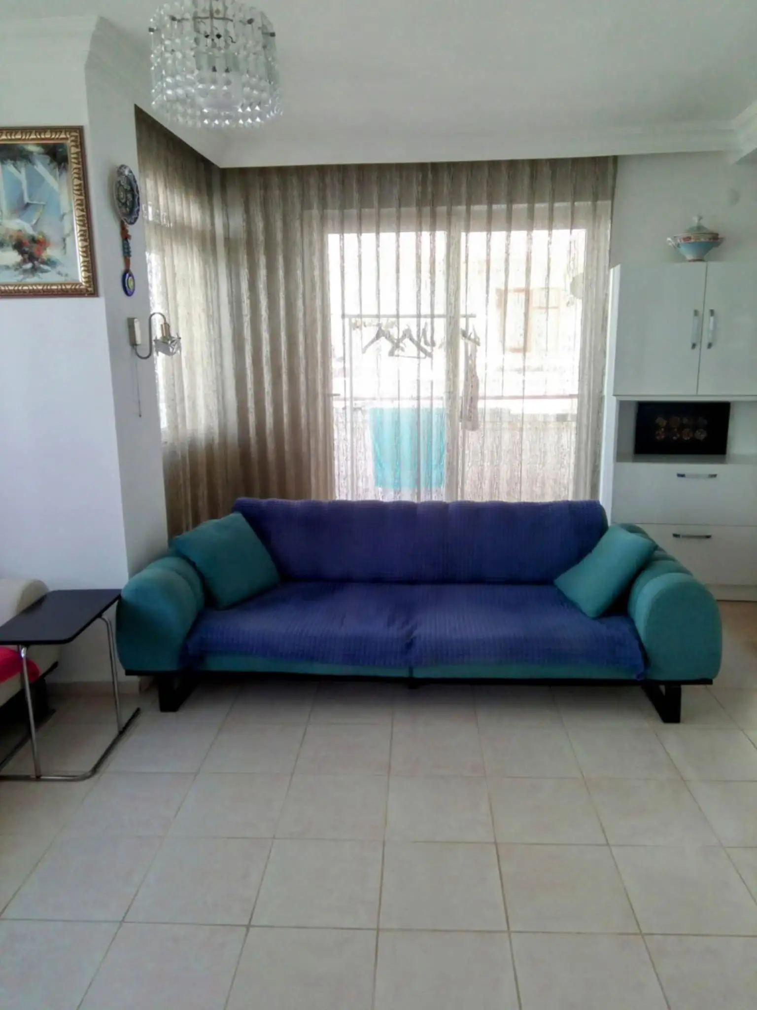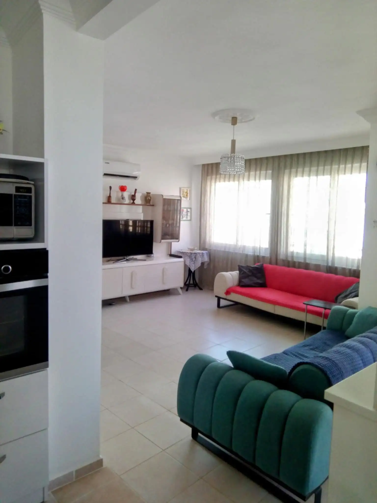 Внутри: Внутри квартиры вас ждут две уютные спальни и просторная гостиная, два полноценных санузла, три кондиционера для комфортного микроклимата в любое время года, а также большой застеклённый балкон — идеальное место для отдыха или домашнего сада. Жильё полностью укомплектовано всей необходимой мебелью и бытовой техникой, включая фильтр для питьевой воды. Горячая вода обеспечивается солнечными батареями, что позволяет значительно экономить на электричестве. Айдат составляет всего 200 лир в месяц — разумные расходы при высоком уровне комфорта.
