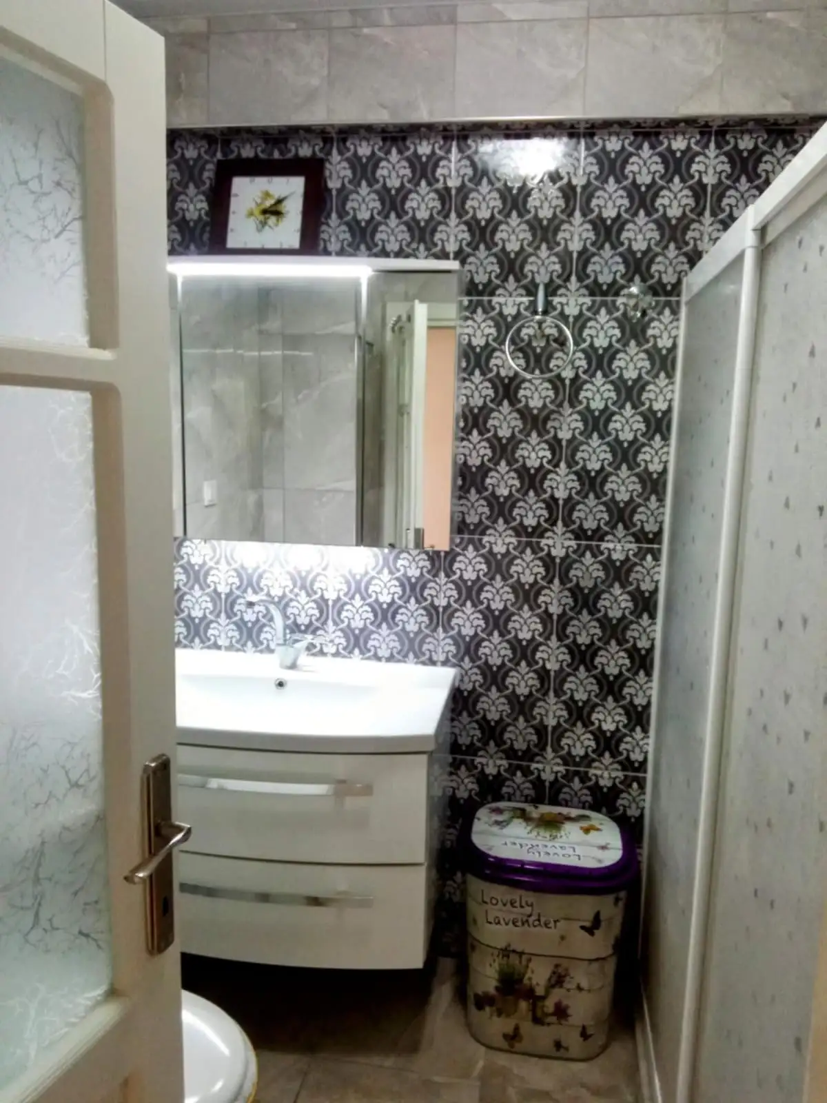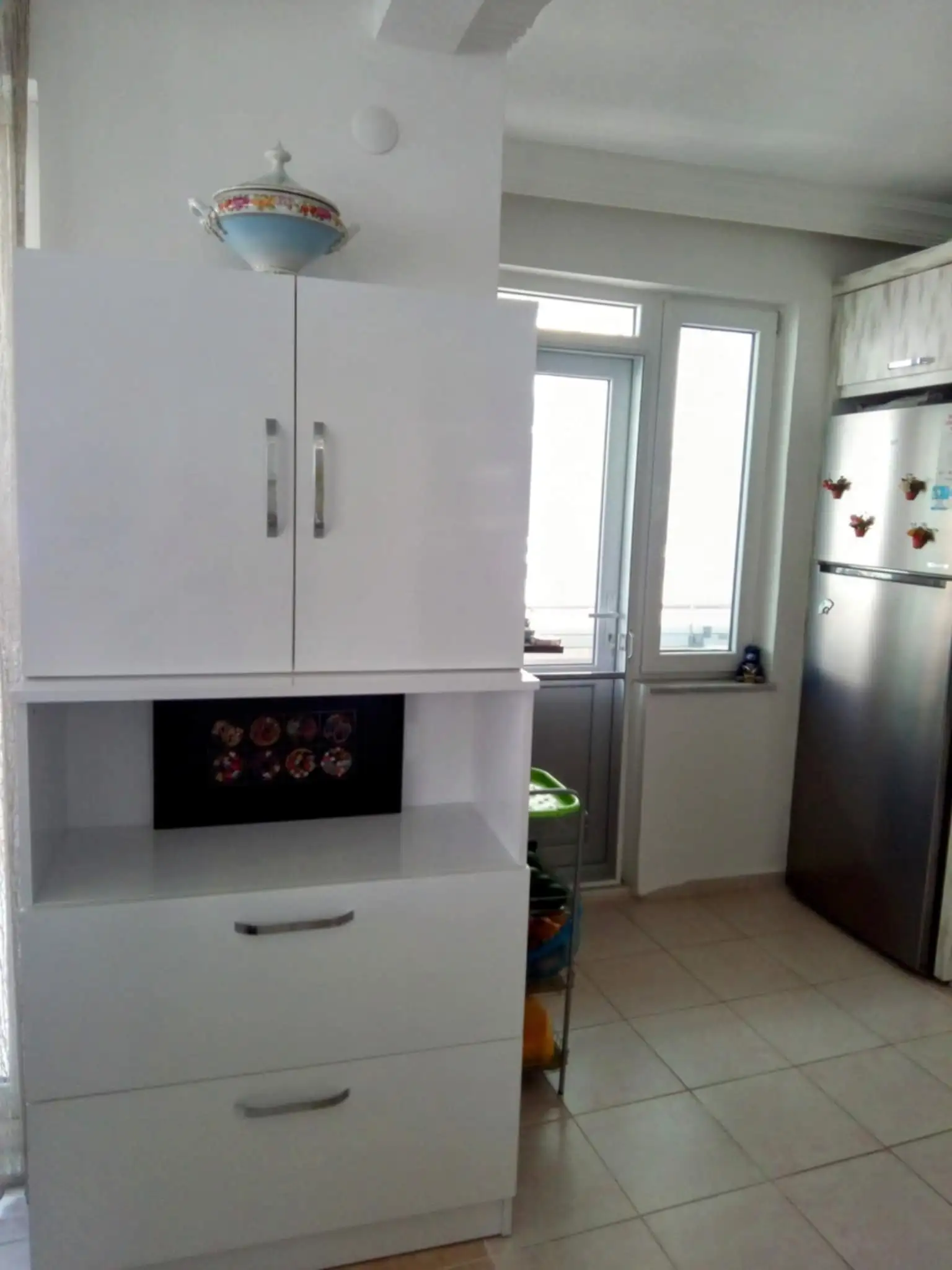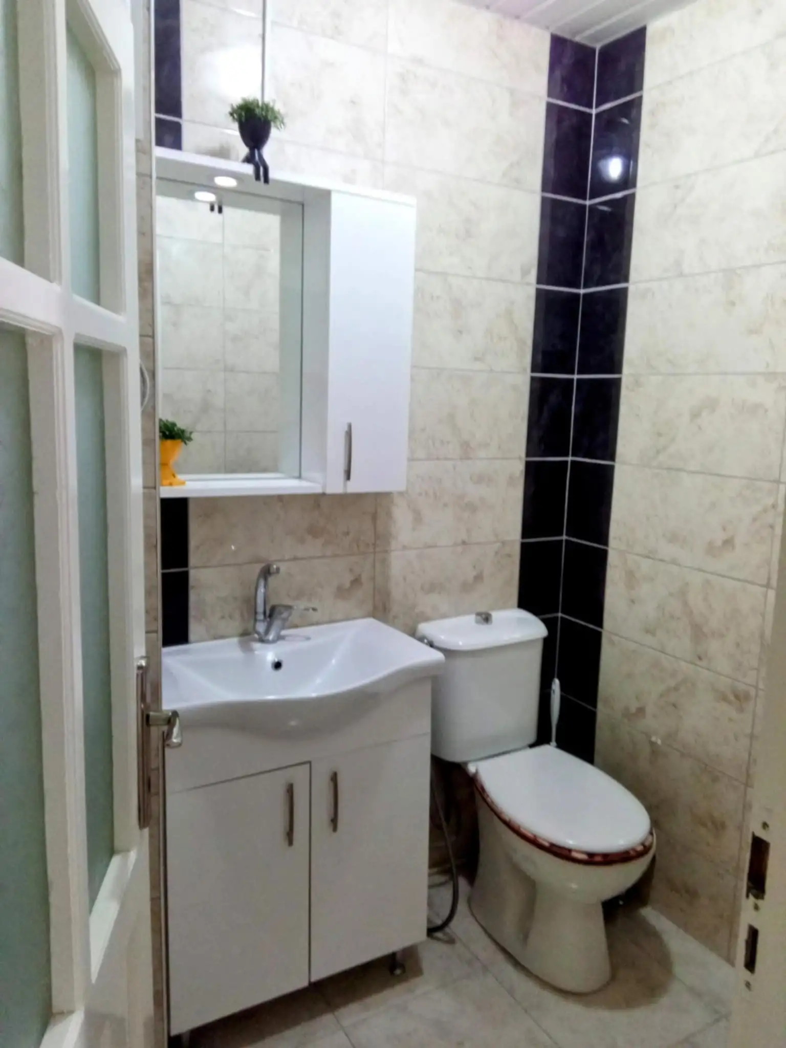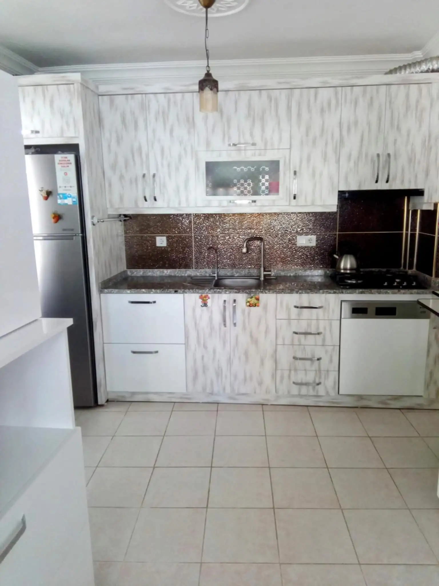 Внутри: Внутри квартиры вас ждут две уютные спальни и просторная гостиная, два полноценных санузла, три кондиционера для комфортного микроклимата в любое время года, а также большой застеклённый балкон — идеальное место для отдыха или домашнего сада. Жильё полностью укомплектовано всей необходимой мебелью и бытовой техникой, включая фильтр для питьевой воды. Горячая вода обеспечивается солнечными батареями, что позволяет значительно экономить на электричестве. Айдат составляет всего 200 лир в месяц — разумные расходы при высоком уровне комфорта.