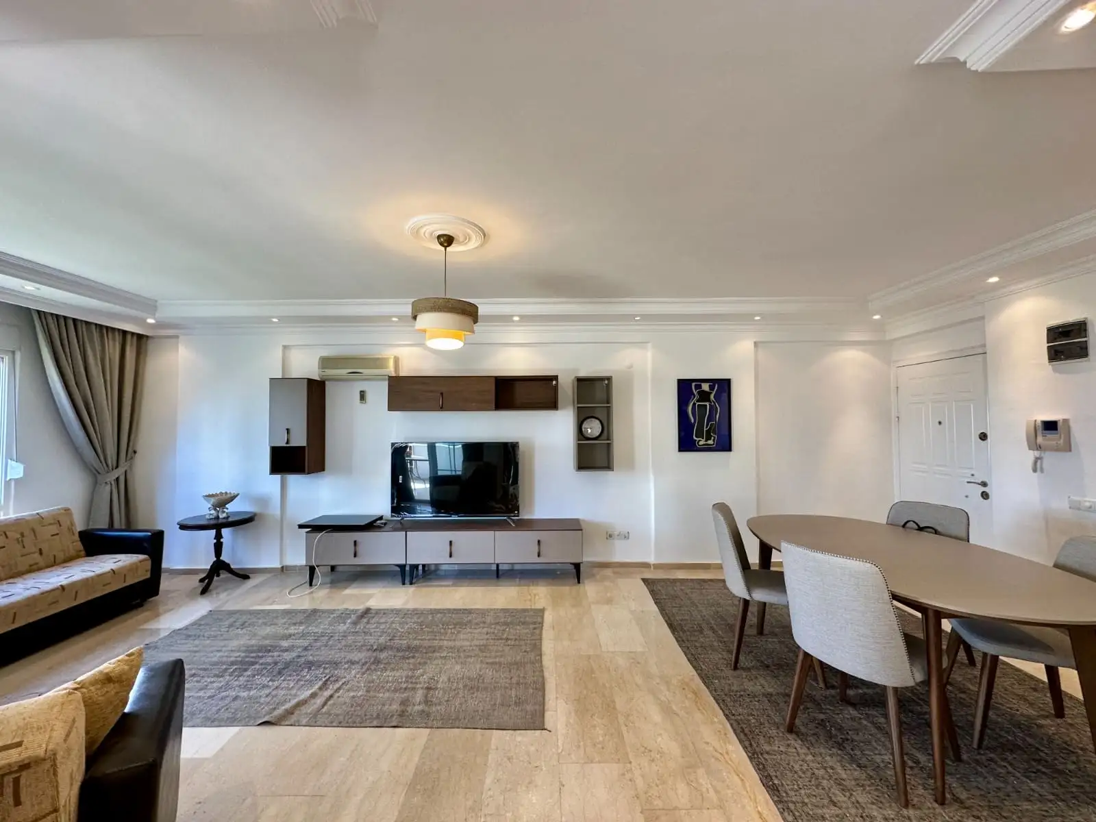 Что рядом: Рядом с домом расположены супермаркеты, овощные и мясные лавки, пекарни, кафе, аптеки, остановки общественного транспорта. В пешей доступности находятся школы, поликлиники, река Дим-Чай с прогулочными зонами, а до центра Алании — 5–10 минут на транспорте.