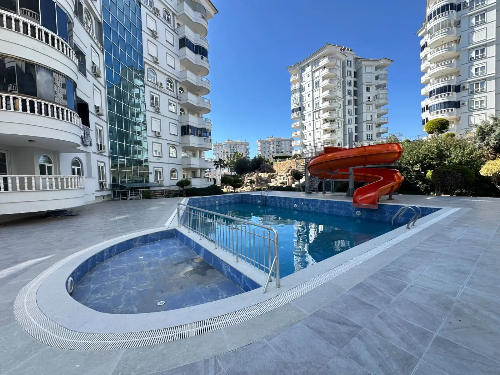 Что в комплексе: Комплекс предлагает всё необходимое для комфортной жизни круглый год: открытый бассейн с аквапарком, крытый бассейн, сауна, хаммам, тренажёрный зал, футбольное и теннисное поле, детская площадка, беседки, зона барбекю, лифт, охрана, видеонаблюдение, парковка и генератор. Территория ухоженная, с ландшафтным озеленением и спокойной атмосферой.