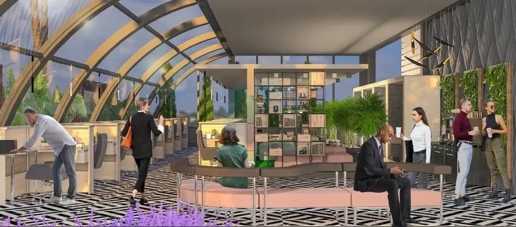 Что в комплексе: На территории в 3000 м2, будет расположена развитая инфраструктура, 8 этажный комплекс, летний бассейн с горками, несколько зон отдыха и барбекю, парковка и зарядкой для электротранспорта, на территории расположены скамейки с розетками, коворкинг для фрилансеров площадью 250 м2 и быстрым интернетом, комната для йоги, мягкая зона, где можно отдохнуть и выпить чай, кофе, воспользоваться принтером.