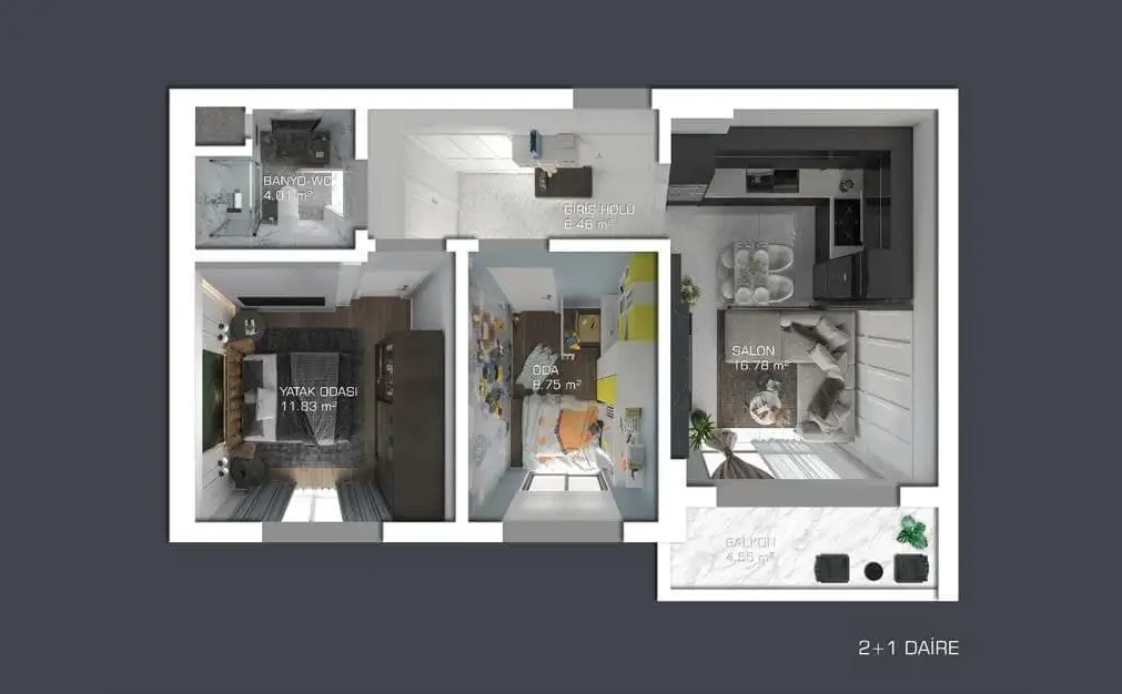 Внутри: Апартаменты предлагаются в полной чистовой отделке, планировка 2+1 площадью 65 м2. Мы поможем выбрать красивую мебель и качественную бытовую технику для Вашего дома, в рамках бесплатного, послепродажного сервиса от нашей компании.