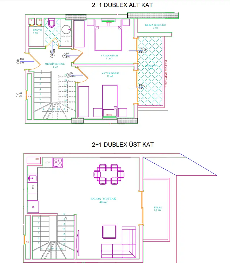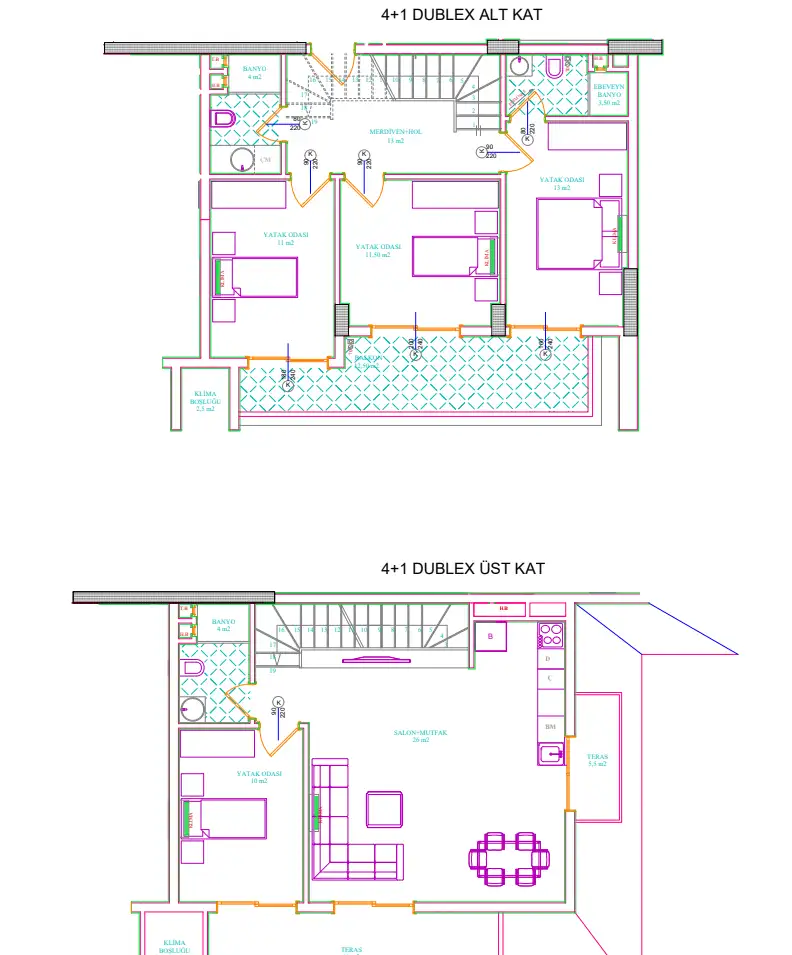 апартаменты планировкой 4+1 дуплекс - площадью 135-180 м2;