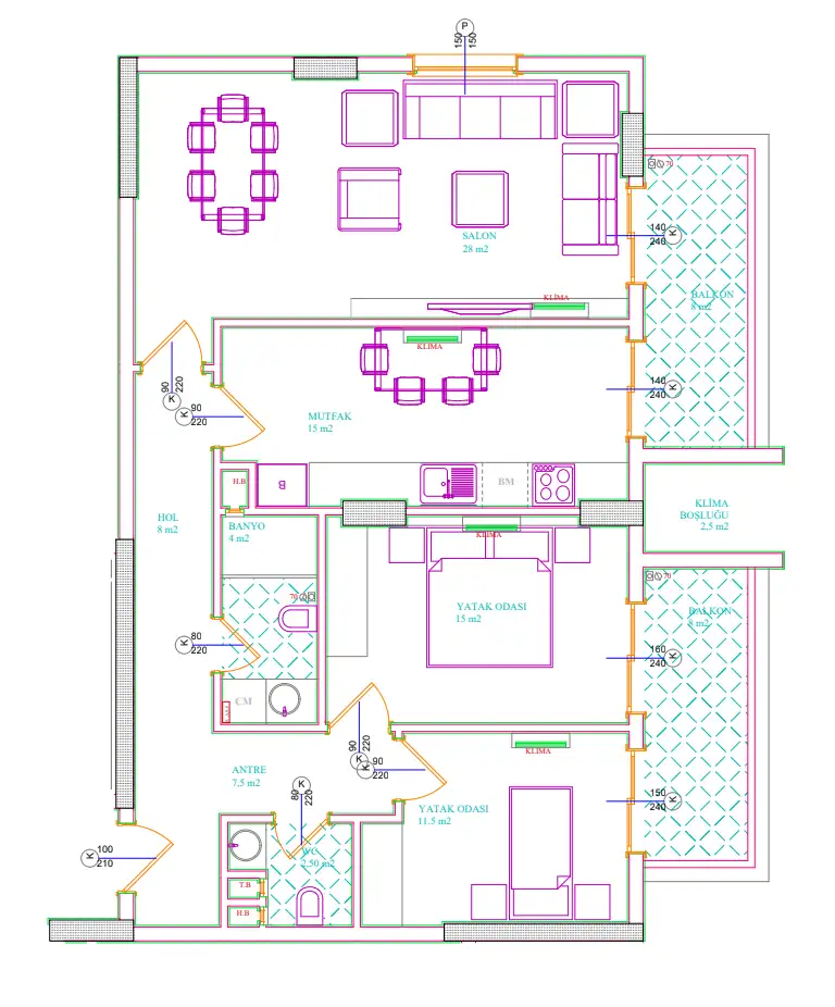 апартаменты планировкой 2+1дуплекс - площадью 105 м2;