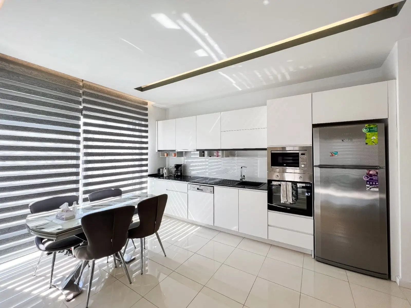 Что вы получаете: Просторная квартира планировки 2+1 общей площадью 108 м², расположенная на 4 этаже. Квартира полностью меблирована, с аккуратным ремонтом и большим балконом. Южная, восточная и западная ориентация обеспечивает отличное естественное освещение. Объект подходит для оформления вида на жительство — все необходимые документы можно оформить сразу при покупке.