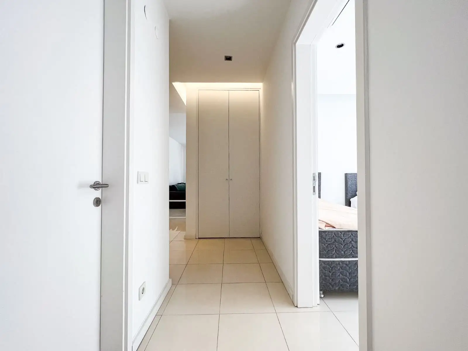 Внутри: В квартире — гостиная с кухней американского типа, две спальни, два санузла и балкон с видом на территорию комплекса. Вся мебель и бытовая техника входят в стоимость, квартира полностью готова к проживанию.