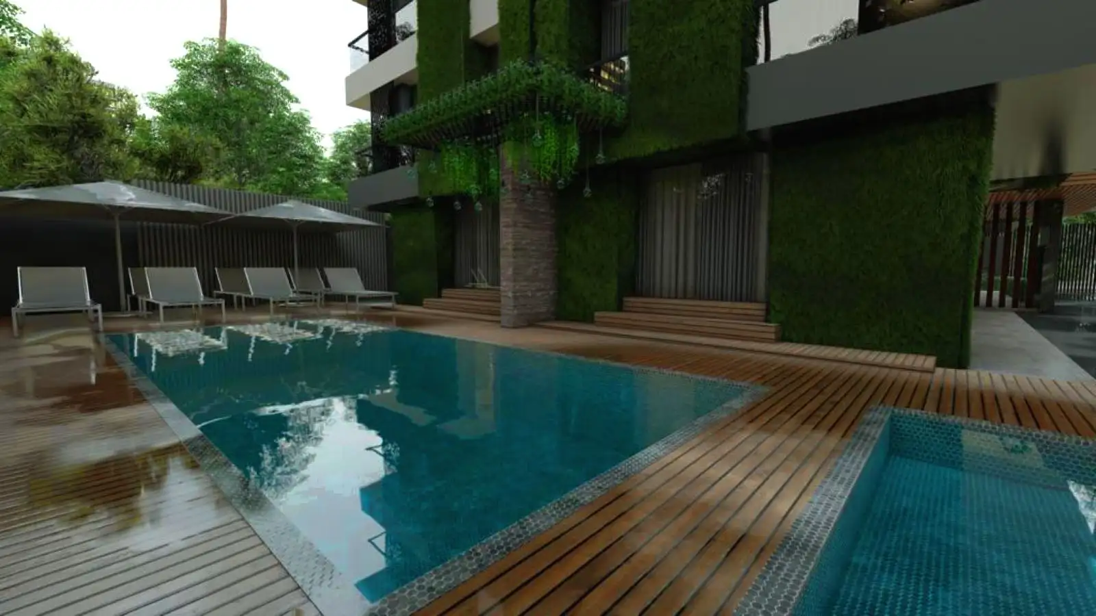 Что в комплексе: На территории будет построен один жилой блок всего на 20 квартир, а также следующая инфраструктура: открытый бассейн, детская площадка, парковка, сад и зона барбекю в нем. В закрытую инфраструктуру комплекса входит лифт, спортивный зал, сауна, парная, видеонаблюдение.;