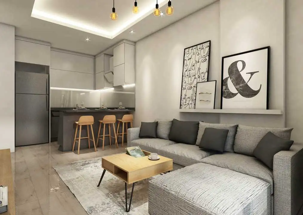 Апартаменты планировкой 2+1, площадью 70 м2, с двумя спальнями, американской кухней, просторной гостиной комнатой и ванной комнатой;