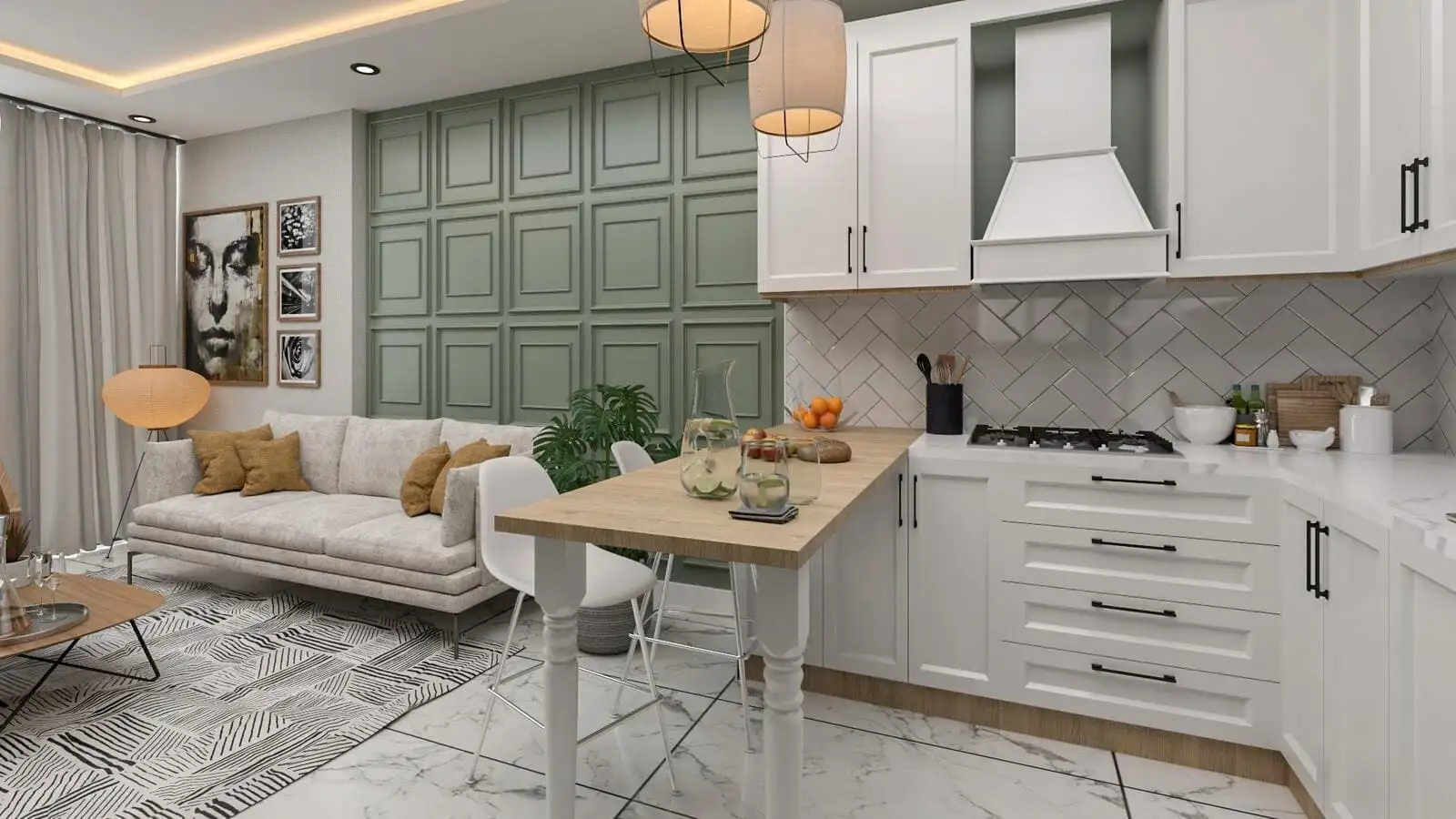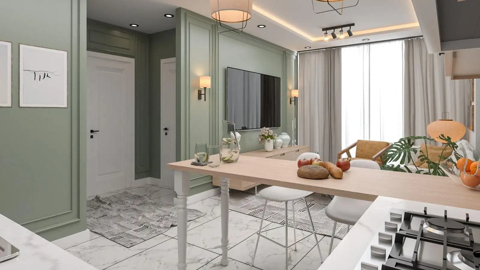Апартаменты продаются в полной чистовой отделке, с высококачественными окнами, дверями, кухонной мебелью и готовыми ванными комнатами.