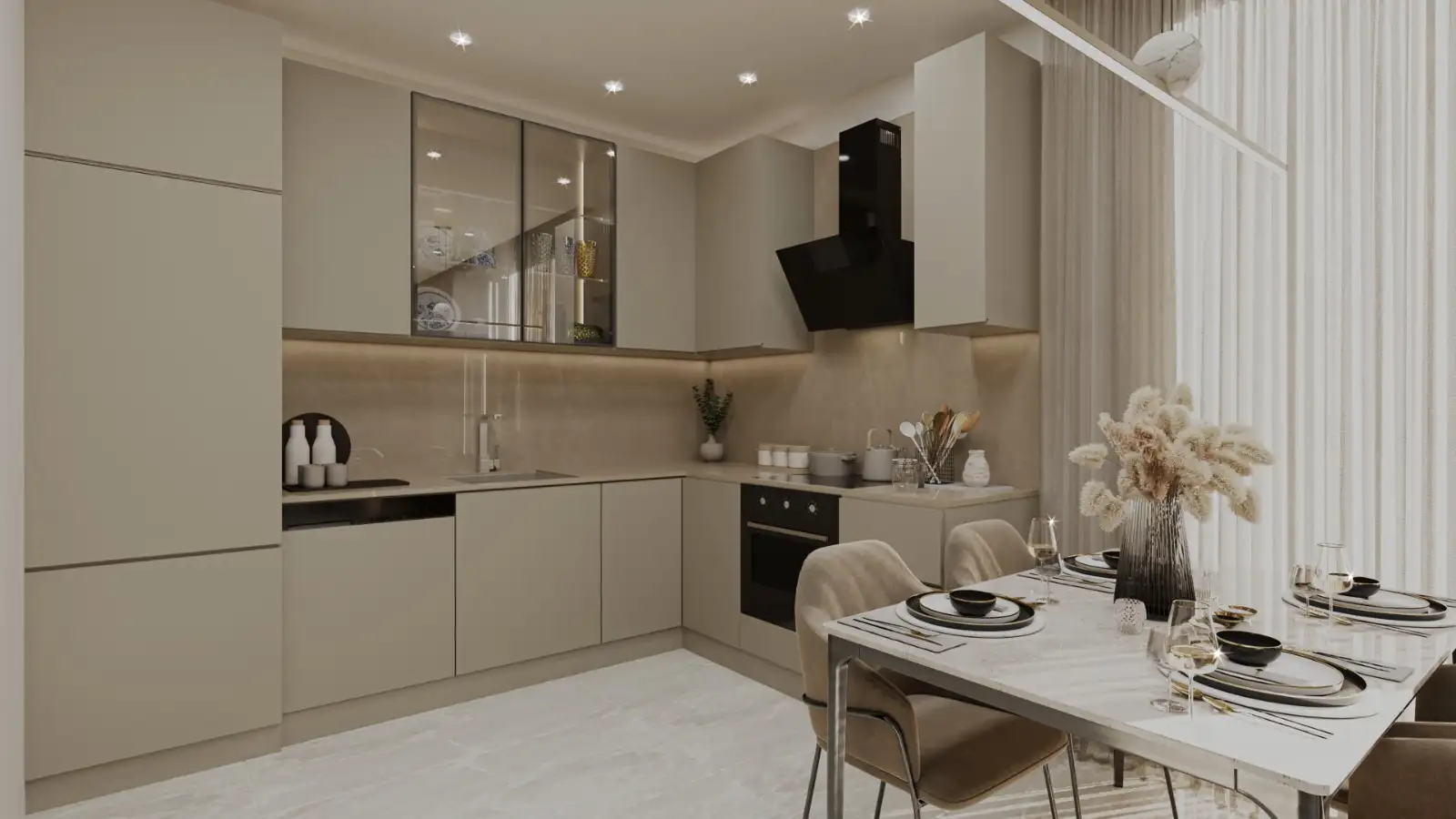 Апартаменты представлены планировками 1+1, 2+1, а также пентхаусами 3+1 и 4+1 с просторными площадями. Все квартиры сдаются с полной чистовой отделкой и премиальной комплектацией: стальная входная дверь, видеодомофон, встроенная мебель на кухне и в ванных комнатах, полный комплект бытовой техники, кондиционеры в каждой комнате, подогрев полов в ванной, качественная сантехника Grohe, душевые кабины и электрический водонагреватель. Пространство продумано для комфортной жизни без дополнительных вложений.