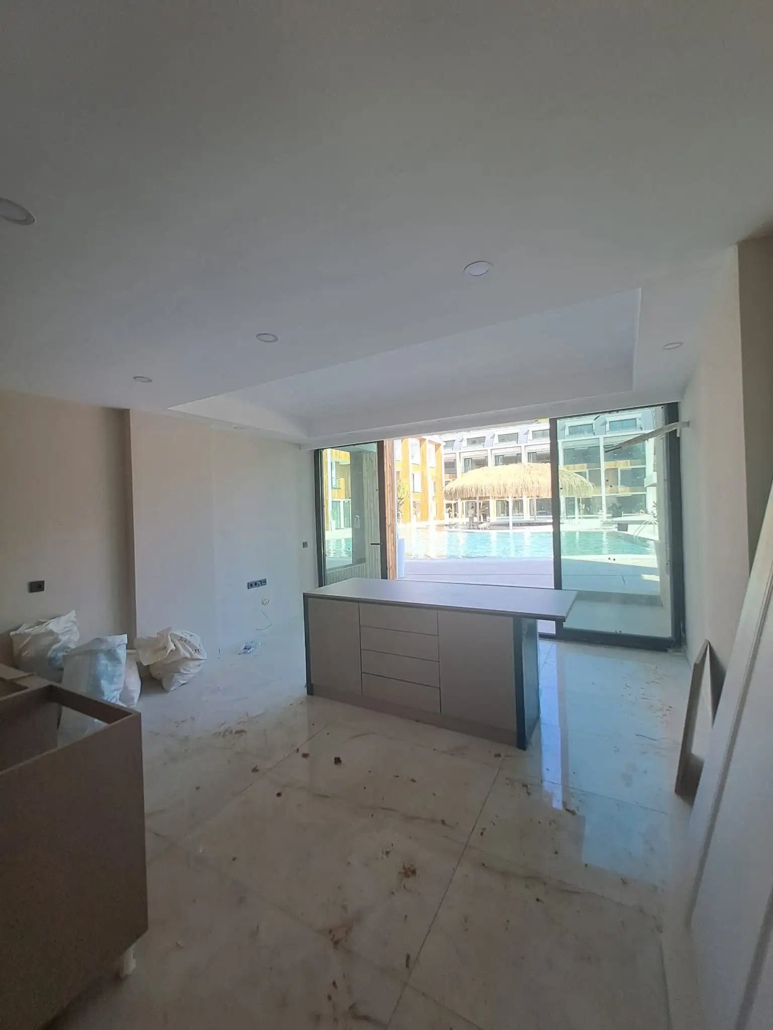 Апартаменты предлагаются в полной чистовой отделке, с высококачественными окнами, дверями, кухонной мебелью и готовыми ванными комнатами.