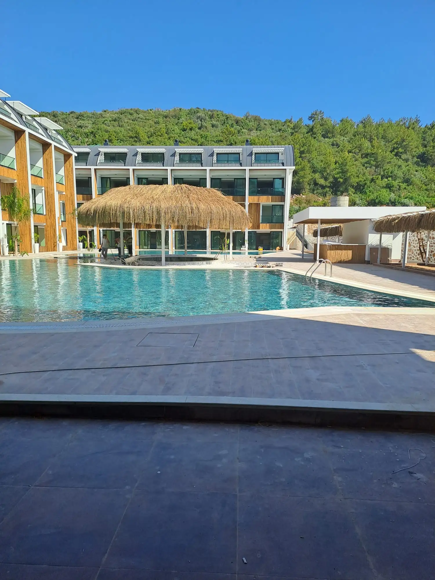 На территории будет расположен открытый бассейн, зона отдыха у бассейна, детская площадка, бар у бассейна, мини гольф, библиотека, мини клуб, комната для отдыха, игровая комната, кафе, финская сауна, джакузи, фитнес, открытая парковка. Будут установлены камеры видеонаблюдения; проведен беспроводной интернет.
