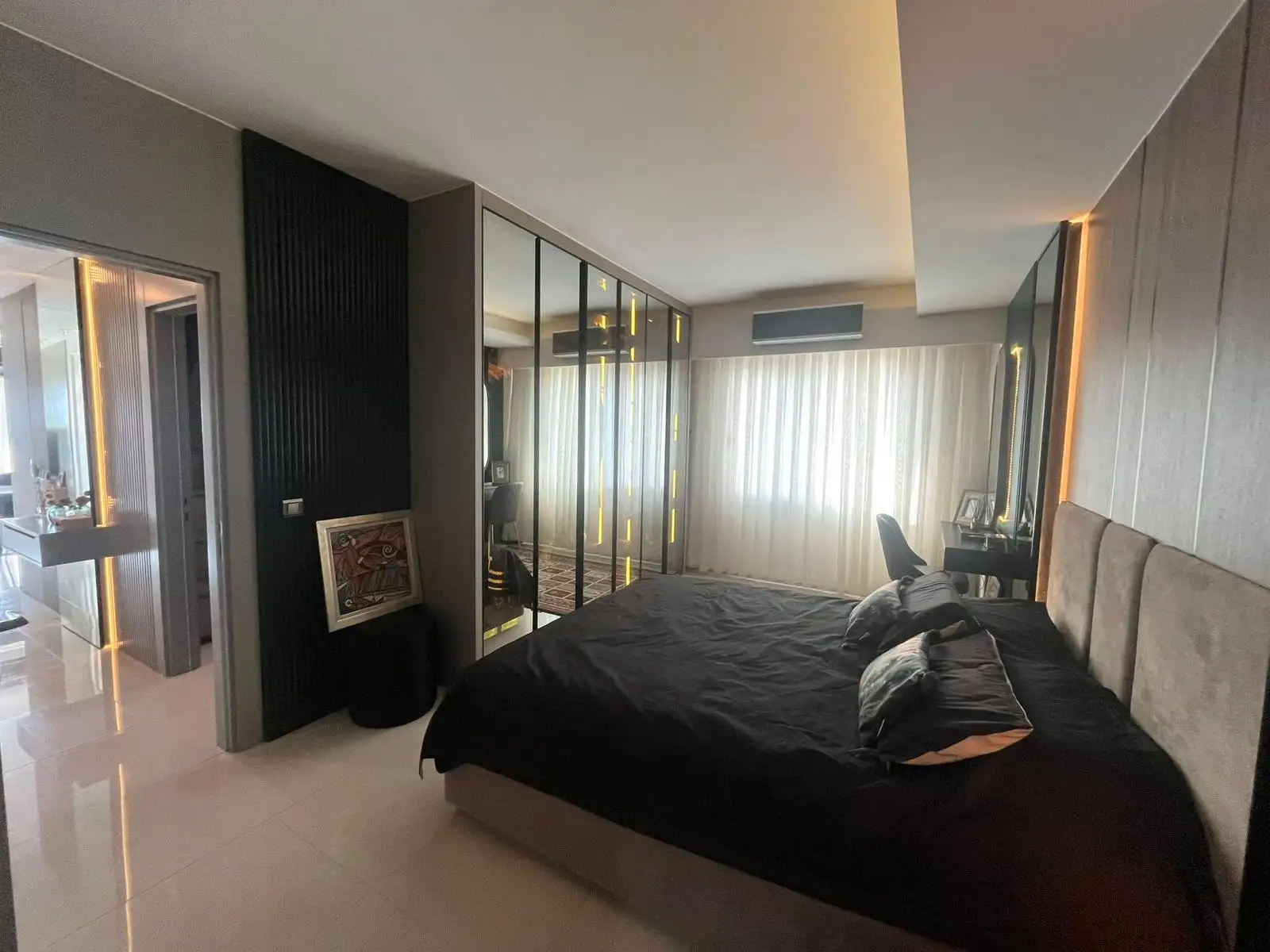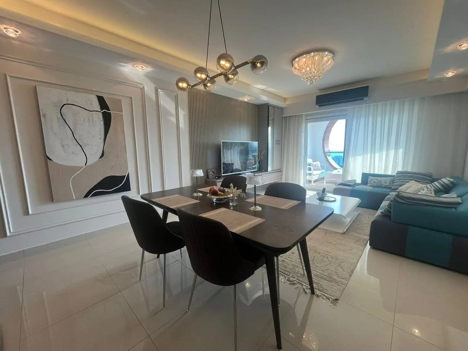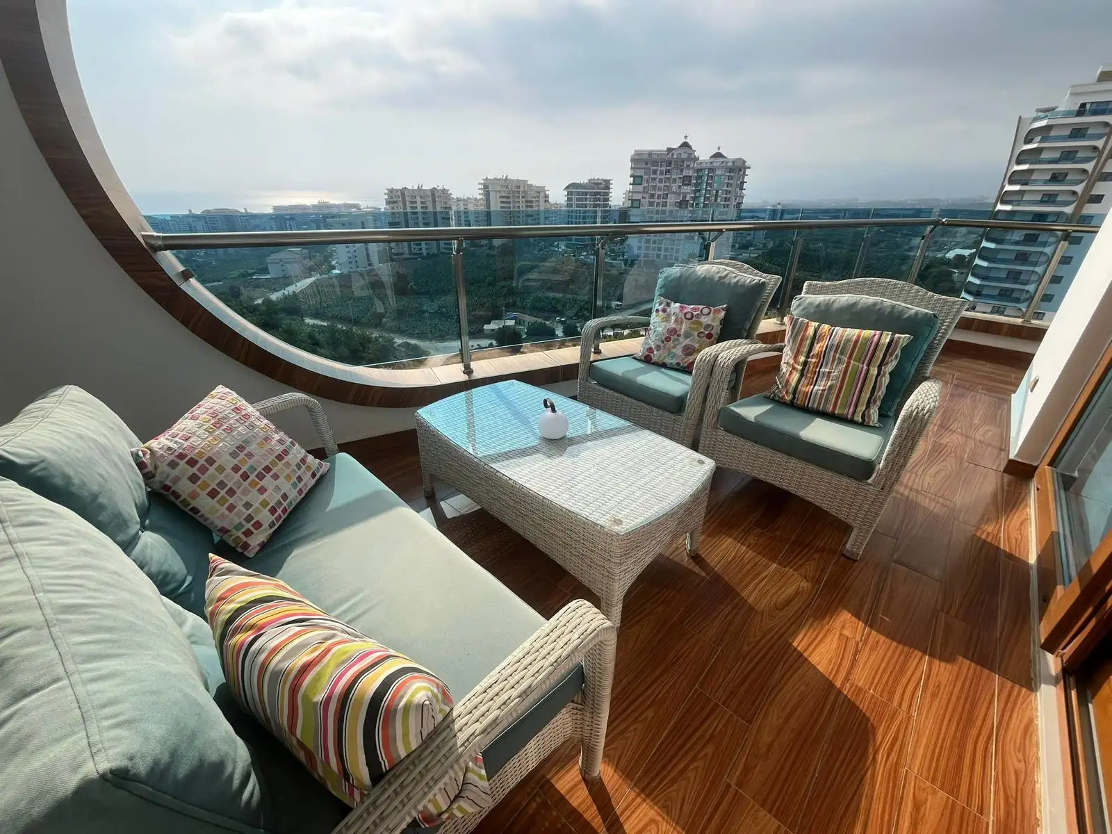 Стильная квартира планировки 2+1 с панорамным видом на Средиземное море. Площадь 132 м2, расположена на 11 этаж элитного комплекса отельного типа с круглогодично работающей инфраструктурой.