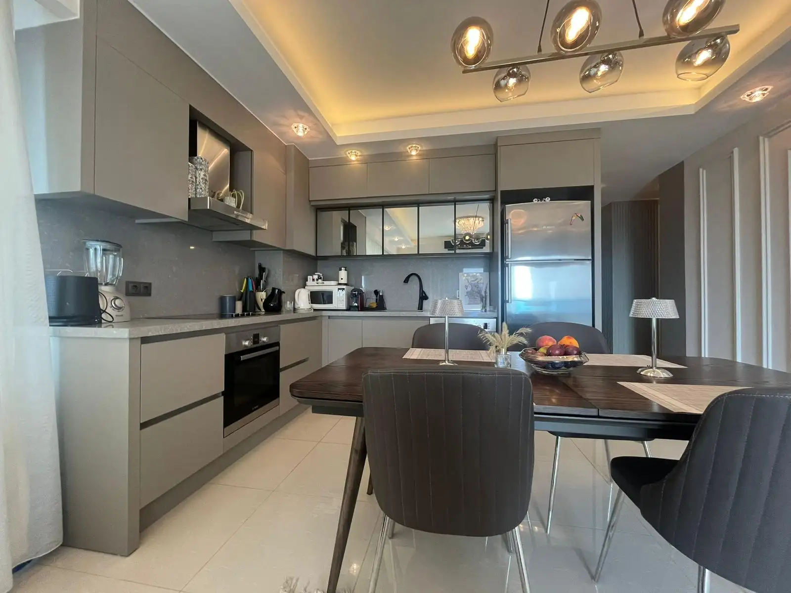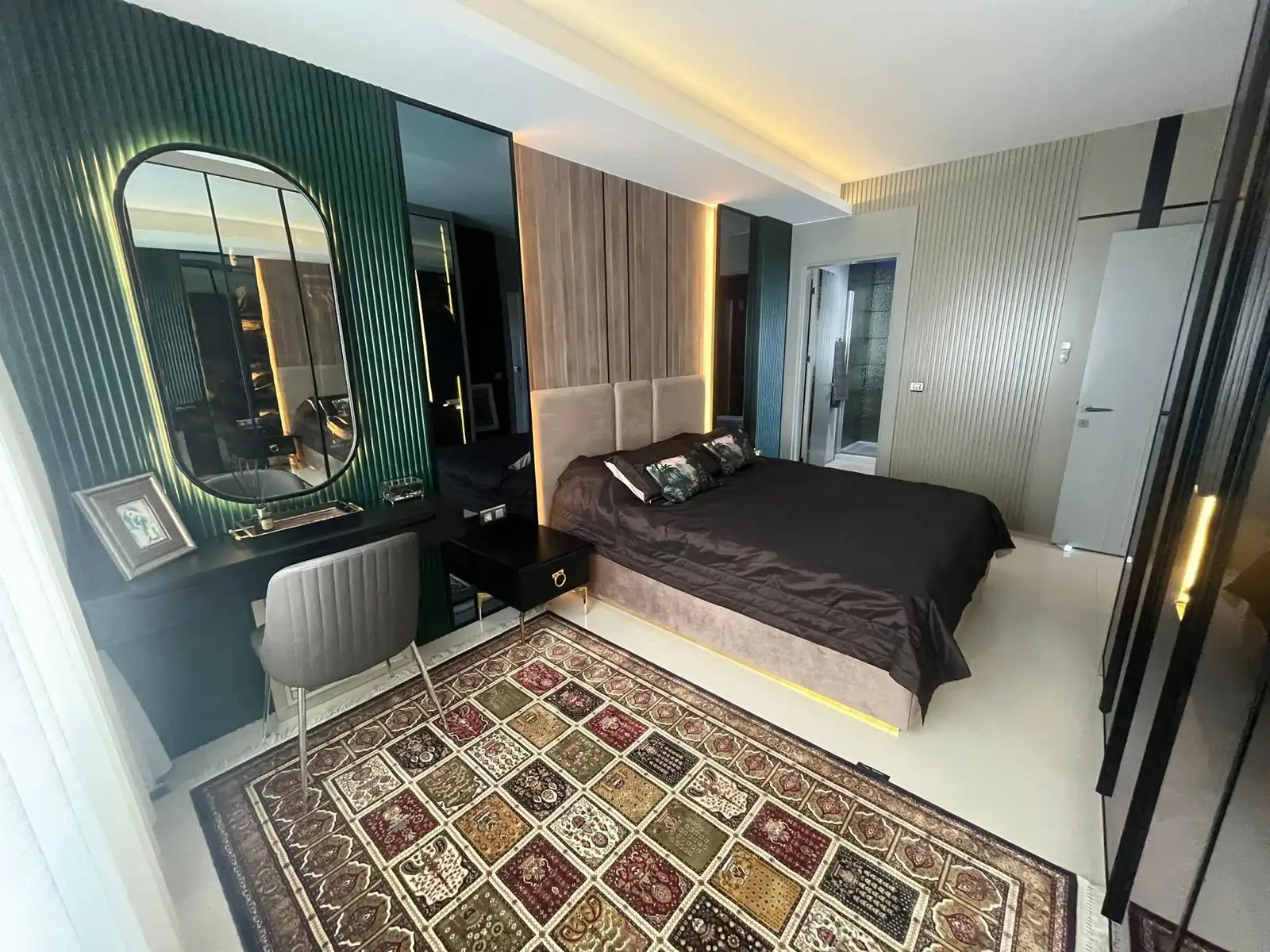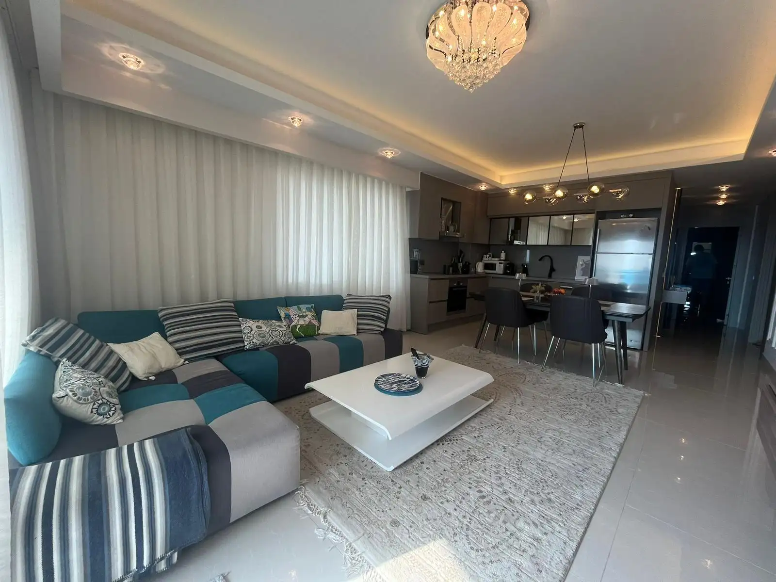 Стильная квартира планировки 2+1 с панорамным видом на Средиземное море. Площадь 132 м2, расположена на 11 этаж элитного комплекса отельного типа с круглогодично работающей инфраструктурой.