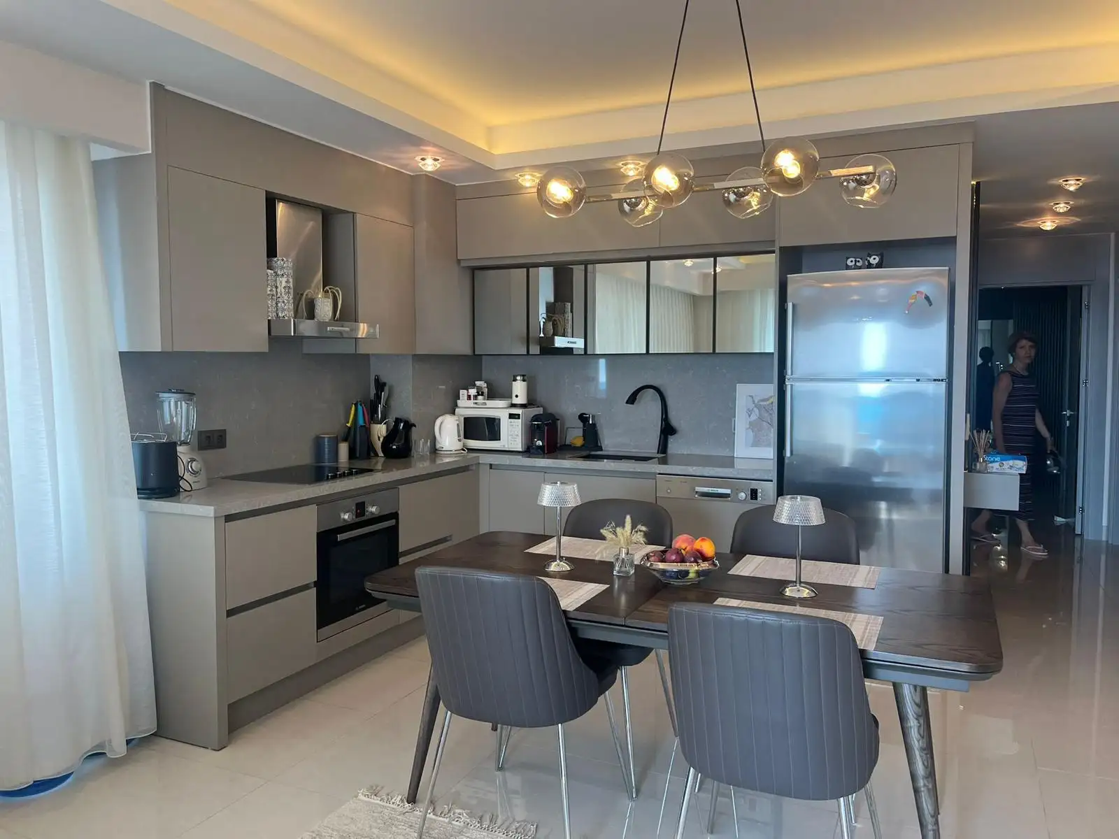 В квартире сделан ремонт с использованием дорогих и высококачественных материалов. Дизайн квартиры был разработан европейским архитектором. Доступно 2 санузла с душем и туалетом и большой балкон с панорамным видом на море и на живописную инфраструктуру комплекса.