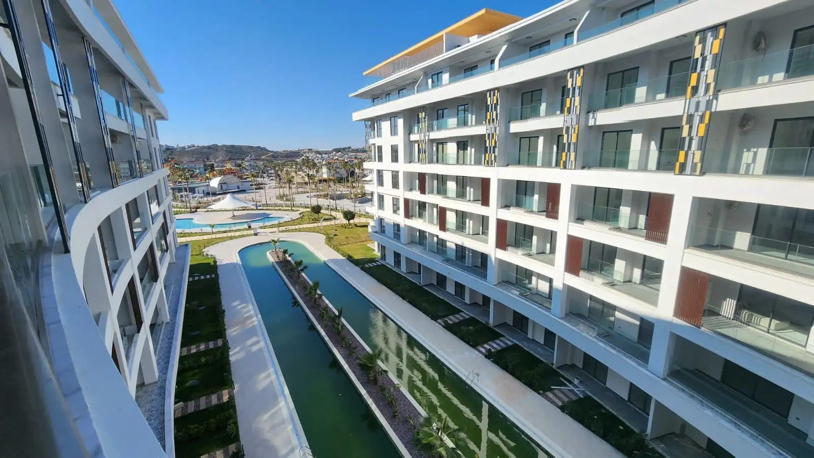Район\пляж: Комплекс находится в престижной части Алании, всего в 3–4 минутах ходьбы от песчаного пляжа. Для жильцов предусмотрен доступ в собственный пляжный клуб с лаунж-зоной, сервисом и удобными лежаками.