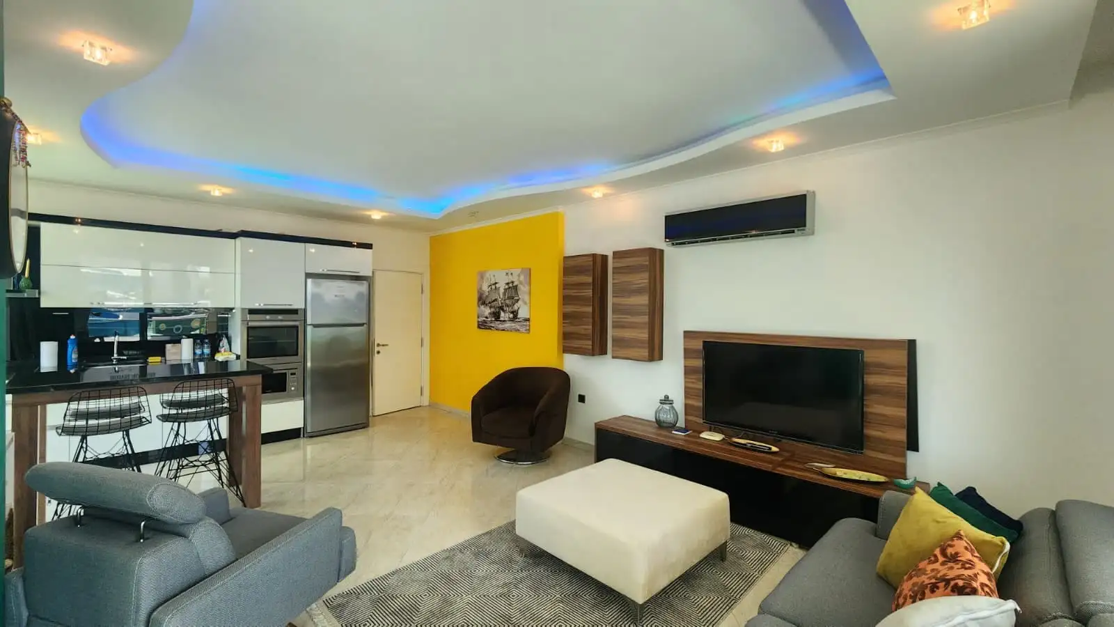 Район\пляж: Дом расположен всего в 1 км от пляжа, в престижном районе города Оба — спокойная и удобная локация для постоянного проживания или отдыха.