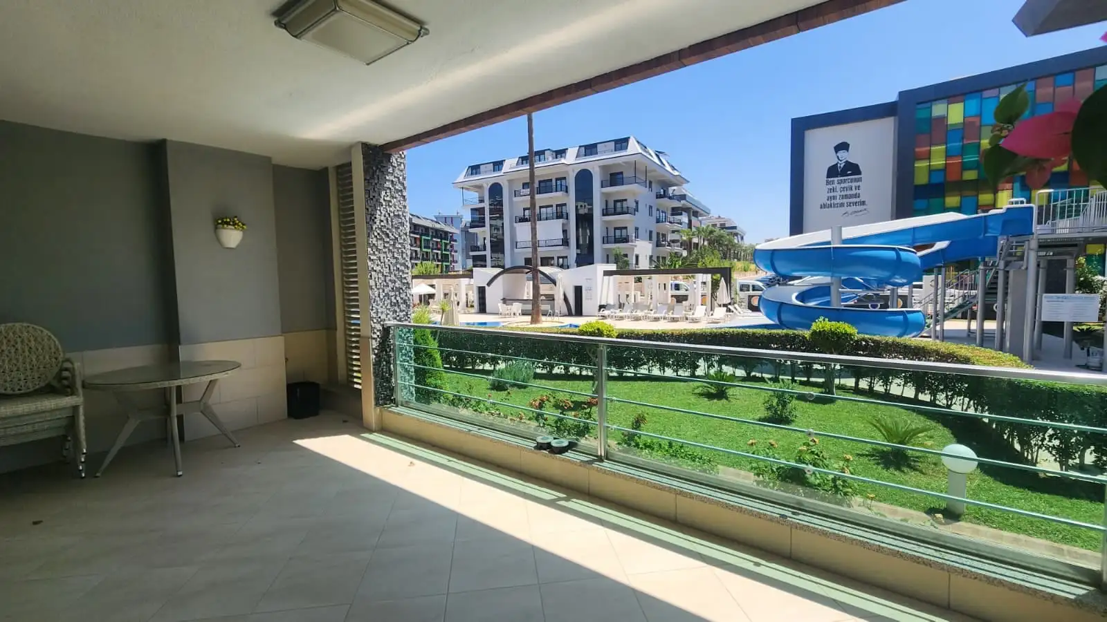 Что в комплексе: Закрытая охраняемая территория, парковка для жильцов, открытый бассейн с водными горками, крытый бассейн, хаммам и сауна. Профессиональный тренажёрный зал, массажные кабинеты и игровая зона для детей делают жизнь в комплексе максимально комфортной для всей семьи.