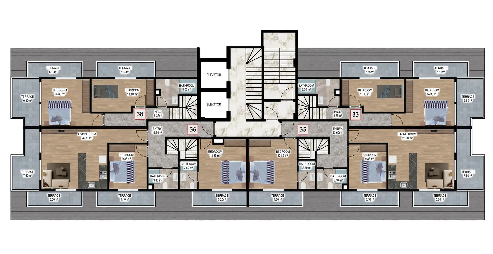 Район\пляж: Алания – это курортный город на берегу Средиземного моря, в 40 км от аэропорта Газипаша. Здесь отлично развита инфраструктура, красивая природа и комфортные условия для проживания.
