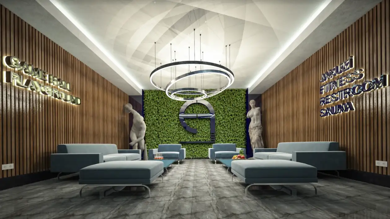 Что в комплексе: Комплекс имеет территорию в 2200 м2, на которой будет расположен 12 этажный жилой блок, летний бассейн с детской зоной, спортзал, сауна, зона отдыха и барбекю, парковка, электрогенератор и другие удобства.