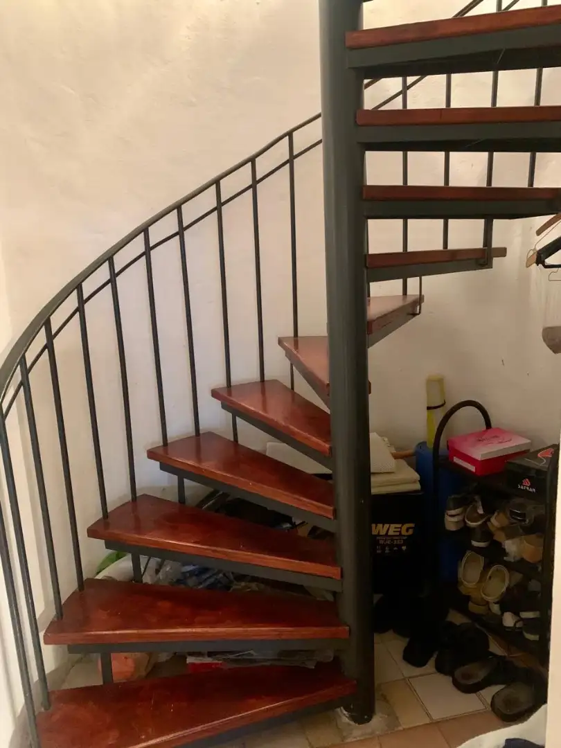 Трёхэтажный дом имеет как внутреннюю, так и наружную лестницу.