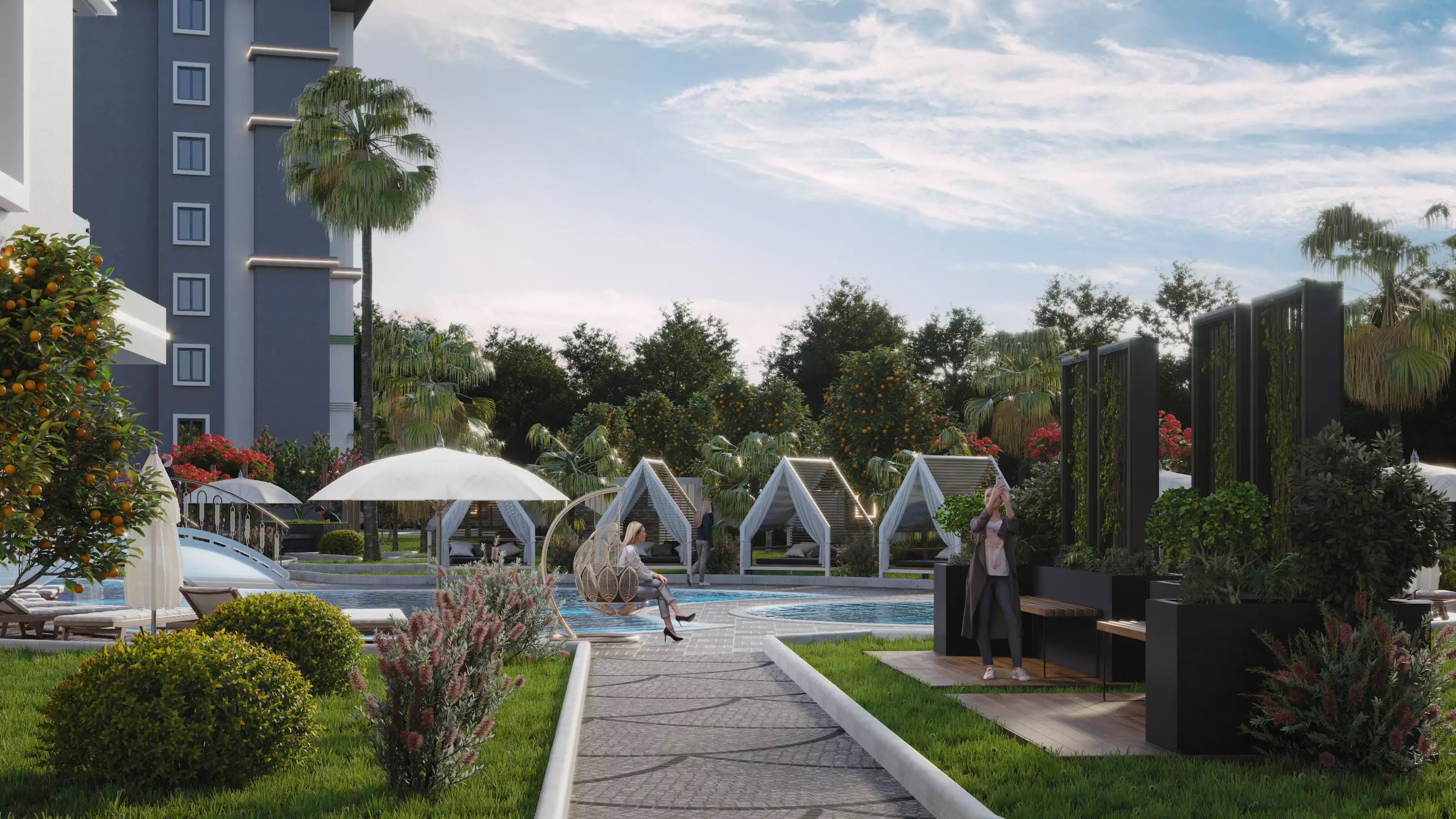Что в комплексе: На большой территории комплекса будет построено 5 жилых блоков и развитая инфраструктура. Из комплекса до пляжа Инжекум и центра города можно будет добраться на бесплатном трансфере резиденции.