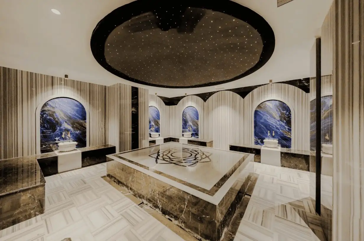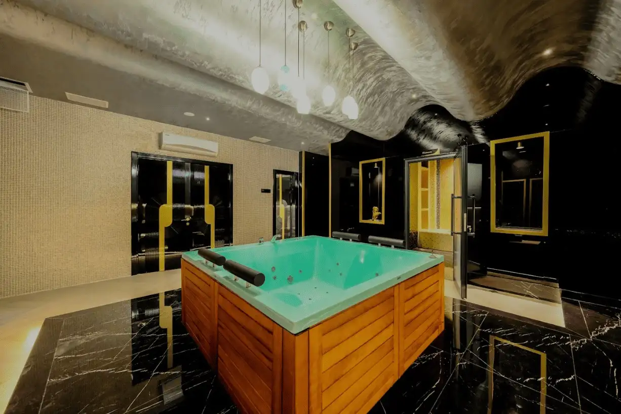 Что в комплексе: Комплекс будет иметь компактную территорию, на которой расположено четыре 5 этажных блока, летний бассейн, детский бассейн, крытая парковка, зимний бассейн, массажные кабинеты, римская парная, турецкий хамам, финская сауна, фитнес центр, детская игровая комната, зона отдыха и барбекю, беспроводной интернет. Комплекс будет находится под видеонаблюдением.