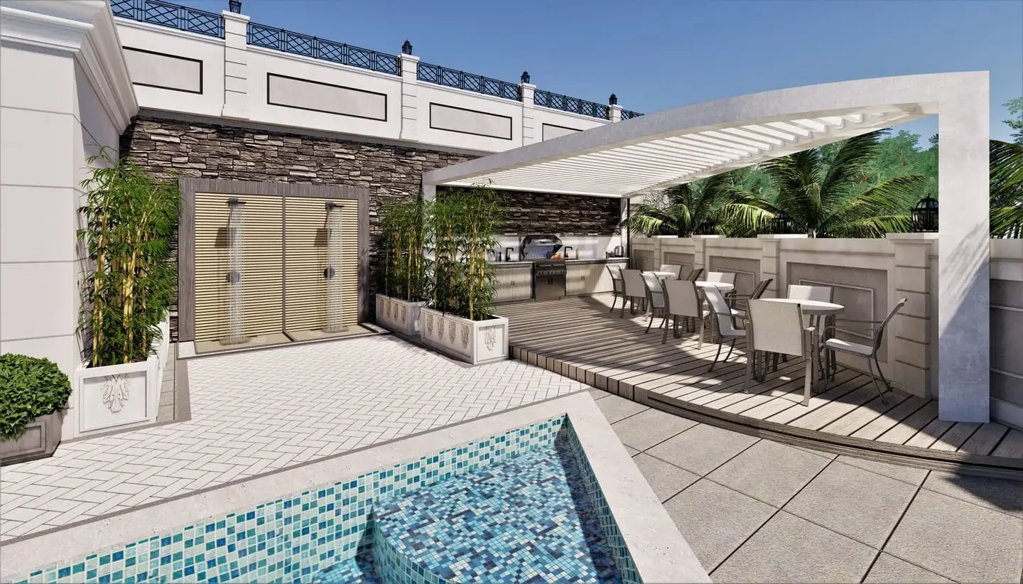Что в комплексе: Комплекс состоит из восьми двухэтажных квартир с современным фасадом. Здесь вы найдете все для комфортной жизни. В комплексе развита как внешняя, так и внутренняя инфраструктура: панорамный открытый инфинити бассейн, хамам, джакузи, фитнес, разнообразные зоны отдыха для детей и взрослых и многое другое.