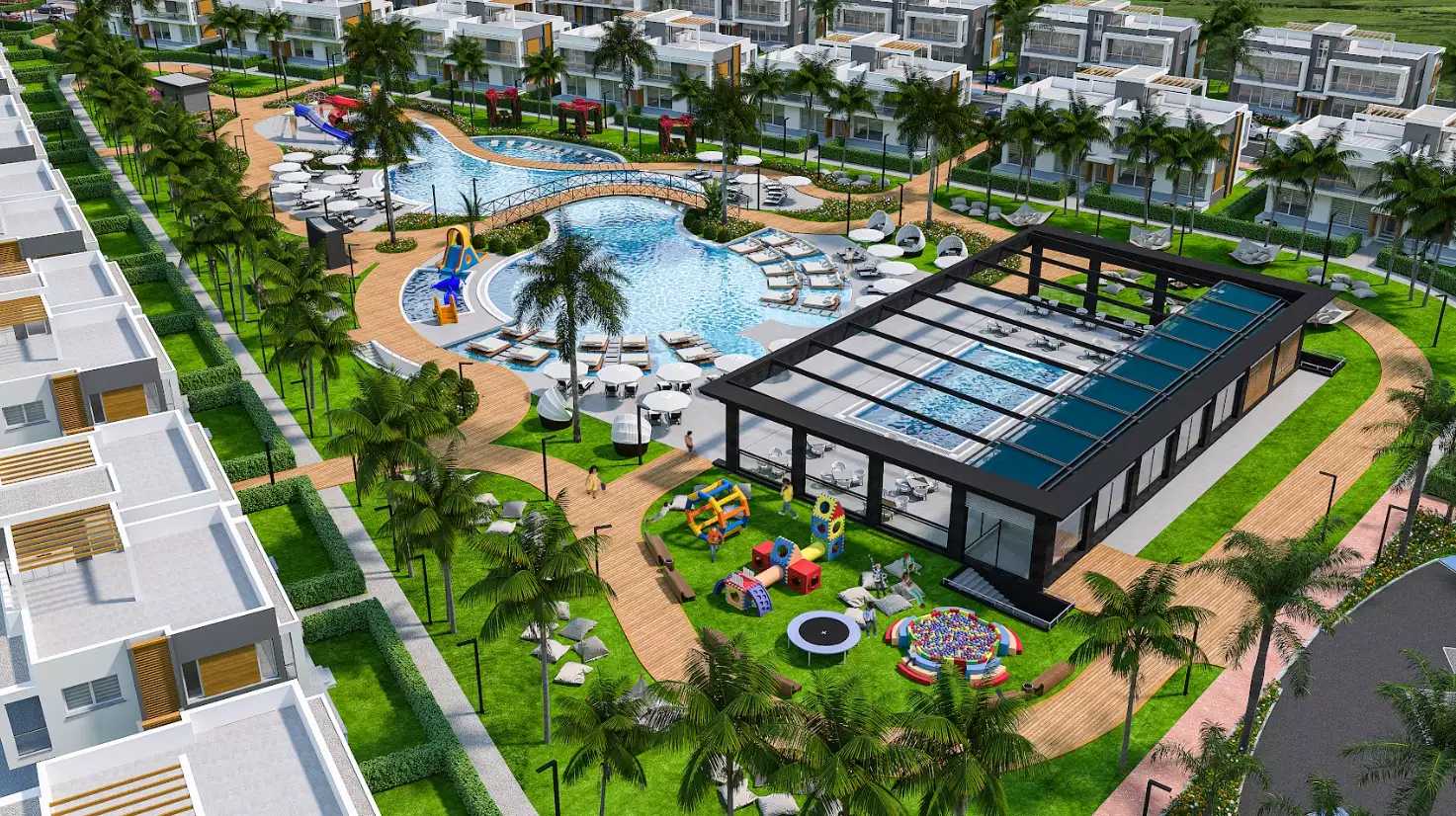 Что в комплексе: Жилой комплекс расположен на участке более чем 102 000 м2, спроектирован с целью создать жизнь мечты, которая легко интегрируется с естественным ландшафтным дизайном и позволяет ощутить богатый край Искеле в его лучшей форме. Этот уникальный комплекс, который состоит из 420 таунхаусов, оснащённых специальными привилегиями на каждое мгновения дня. Для приятного времяпрепровождения, в комплексе продумано все до деталей, включая - открытый бассейн, детский бассейн, сауна, фитнес, детская площадка, пляжный бар, ресторан, закусочная, аква-парк, прогулочная дорожка, велосипедная дорожка, парковка для автомобилей.