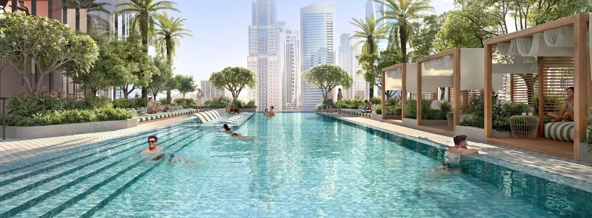 Удобства: фитнес-центр, бесконечный бассейн на крыше, розничные магазины, эксклюзивные варианты питания, круглосуточная охрана, услуги консьержа, коворкинг-пространства, многоцелевой вестибюль.