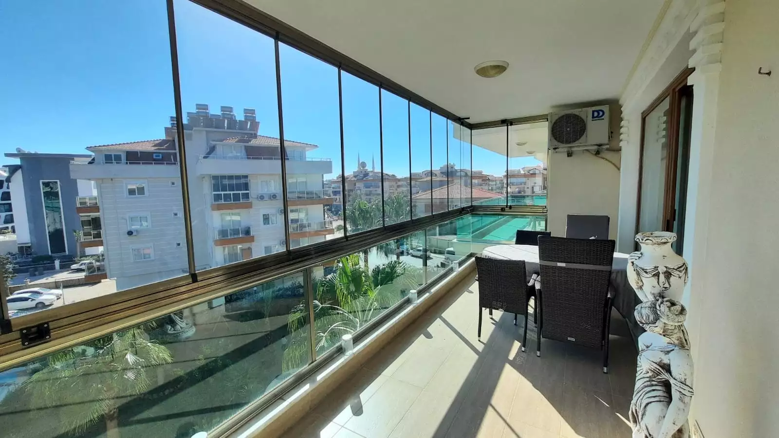 Что вы получаете: Просторная меблированная квартира 2+1 общей площадью 120 м², расположенная на 3-м этаже в уютном комплексе. Квартира включает две ванные комнаты с подогревом пола, два балкона (один зимний), юго-восточную ориентацию и виды на бассейн, сад и город. Дом построен в 2012 году и имеет всего 3 блока.