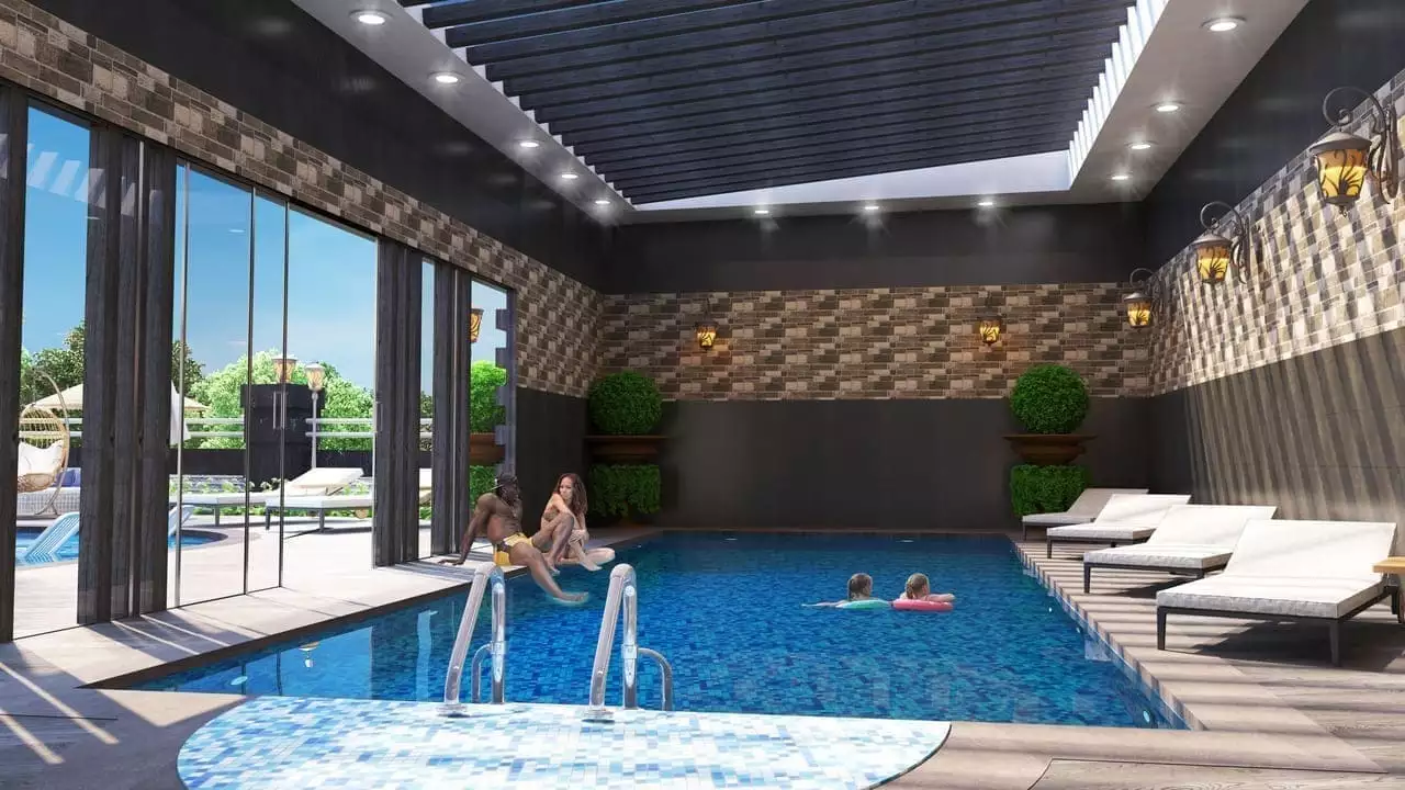 Что в комплексе: На закрытой территории расположено два 5-этажных блока, открытый бассейн с горками, крытый бассейн с подогревом, хамам, финская сауна, фитнес, массажные кабинеты, комната отдыха, беседка, детская площадка, мини клуб, кинотеатр, бильярд, настольный теннис, бар у бассейна, открытая парковка, генератор.