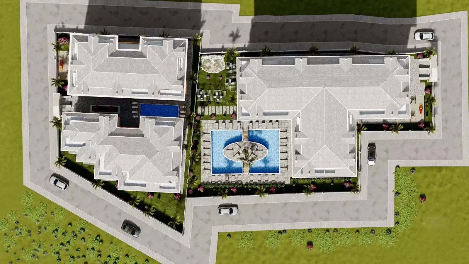 Что в комплексе: На территории 3320 м2 расположено три 9 этажных, жилых блока, два летних бассейна, крытый бассейн, зона отдыха и барбекю, беседки для отдыха, детская площадка, массажная комната, финская сауна, комната отдыха, фитнес центр, игровая комната, электрогенератор, комната консьержа.