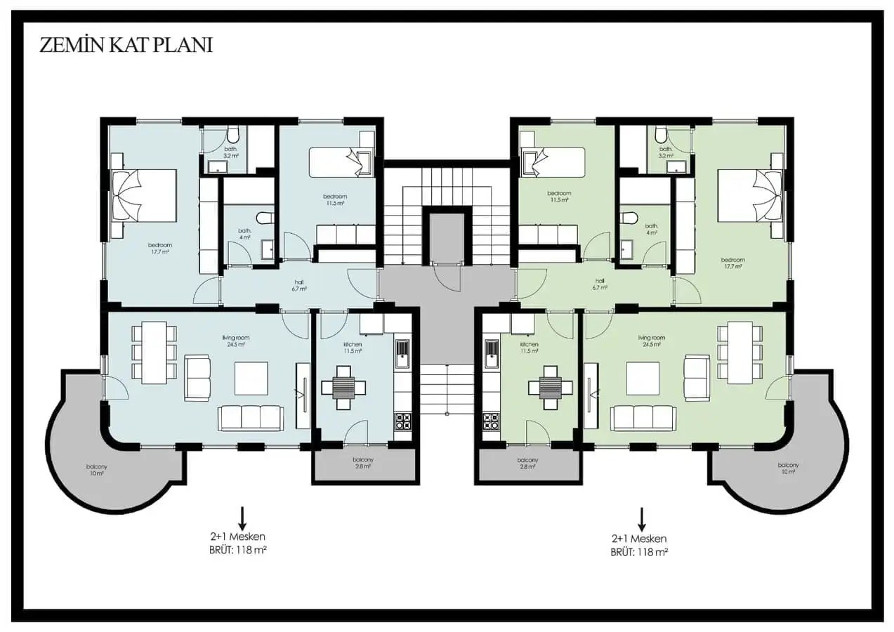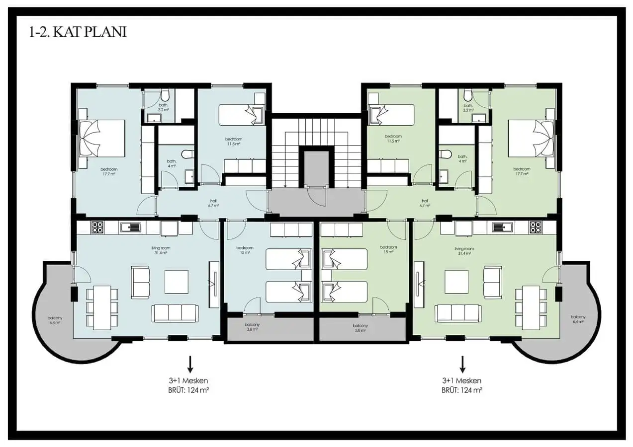 Что рядом: Рядом расположены супермаркеты, различные магазины, продуктовый и вещевой рынок, спортивные и детские площадки, рестораны, парки; в 450 метрах - красивая набережная, знаменитый пляж Клеопатры, отмеченный голубым флагом и большая зона отдыха на берегу моря, а также другие объекты городской инфраструктуры.