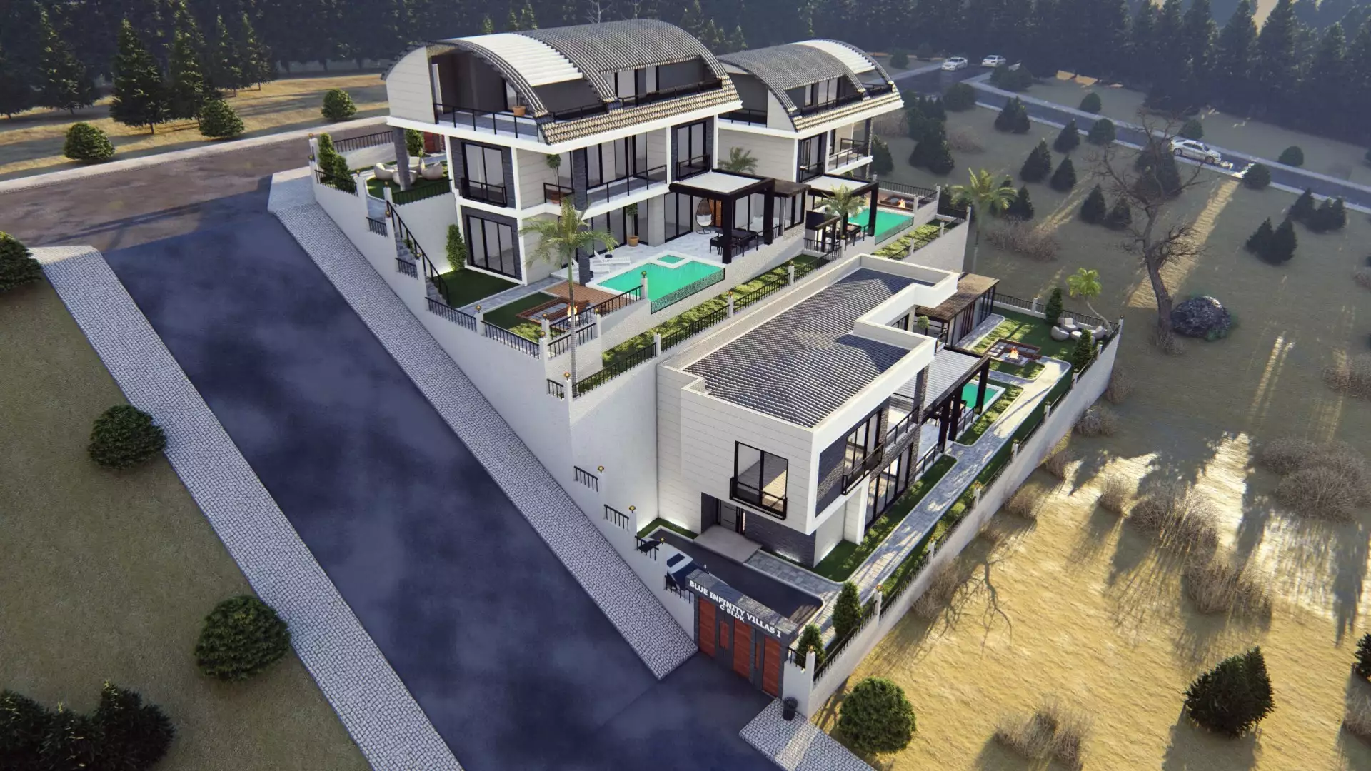 Что в комплексе: На территории в 1200 м2 расположено 3 виллы. А и В виллы имеют 3 этажа, планировку 4+1 и жилую площадь 350 м2. В вилле имеется лифт, гостиная, кухня, гардеробная комната, 2 спальни с ванными комнатами и гардеробными, 1 спальня с ванной комнатой, джакузи и гардеробная, 4 ванные комнаты с ванной и 1 туалетом, 1 терраса при входе, 1 терраса на 2 этаже, 2 террасы на верхнем этаже, инфинити бассейн с детской зоной, сауна, спортзал, джакузи, зона отдыха и барбекю, зелёный сад, парковка на 2 авто. Вилла С имеет планировку 2+1 и жилую площадь 248 м2.