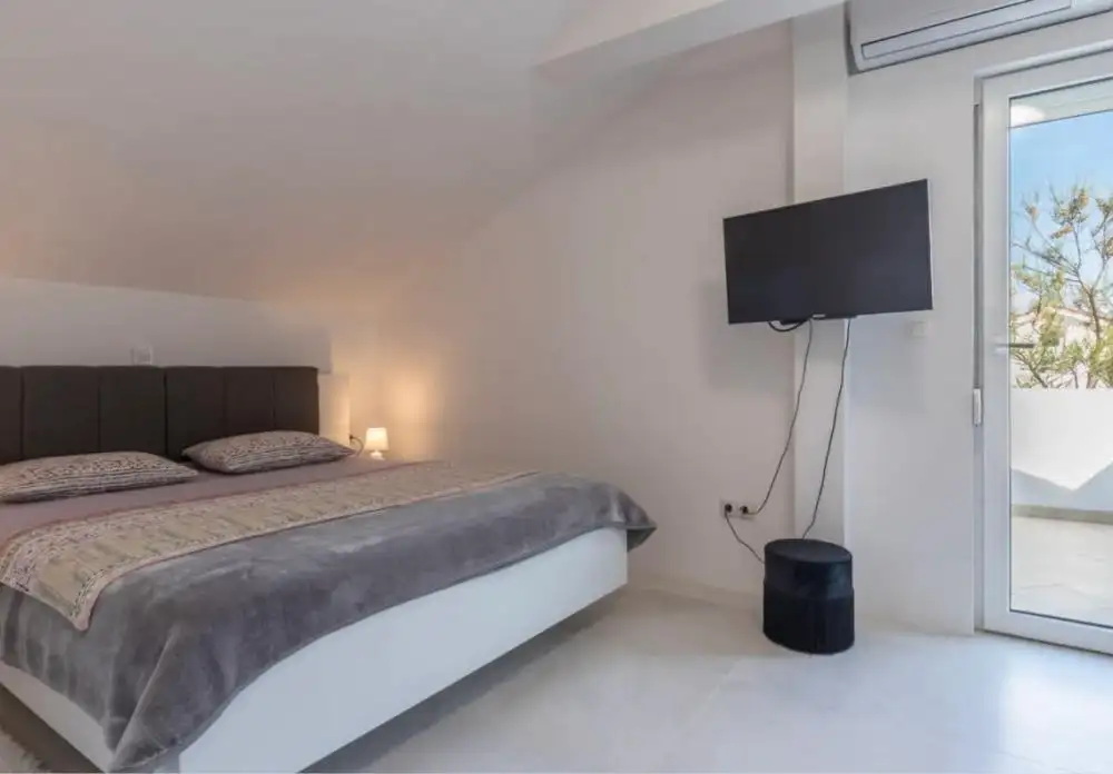Эта резиденция, недавно отремонтированная в 2021 году с неизменным стремлением к качеству, отличается вниманием к деталям. Он состоит из двух уровней, верхний этаж представляет собой великолепный чердак. На первом этаже расположены просторная гостиная, соединенная с обеденной зоной, хорошо оборудованная кухня, ванная комната и спальня с отдельной ванной комнатой. На высоком чердаке расположены еще три спальни и две дополнительные ванные комнаты. Каждая спальня выходит на просторную террасу, где ждут потрясающие виды на открытое море и величие горы Велебит. Весь мансардный этаж имеет комфортный пол с подогревом. В 2021 году этот дом прошел капитальный ремонт и теперь сияет свежестью. В стоимость входит изысканная мебель.
