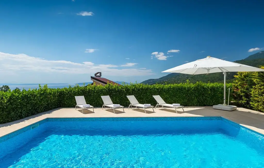 Красивая вилла в Поляне над Опатией, всего в 3 км от моря, с бассейном, панорамным видом на море и полной приватностью!