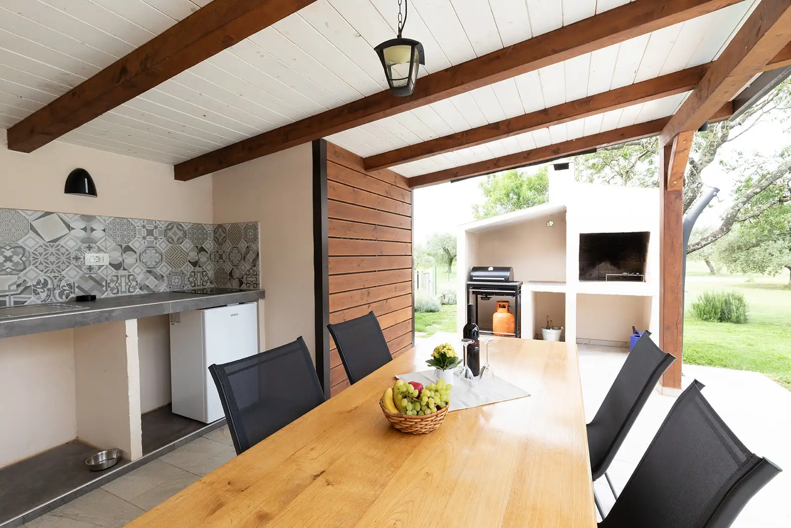 Вилла расположена на впечатляющем саде площадью 6559 м², который обеспечивает полное спокойствие и приватность. Уличная зона включает в себя бассейн размером 3 x 8 м, крытую летнюю кухню размером 4 x 6 м с котельной для бассейна и дополнительным туалетом, а также просторные зоны для отдыха и релаксации на свежем воздухе. Особенно ценным элементом недвижимости является автохтонный истрийский оливковый сад с более чем 50 оливковыми деревьями сорта Леччино, который подчеркивает как красоту, так и аутентичность усадьбы.