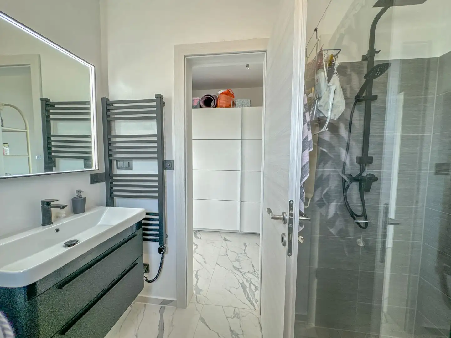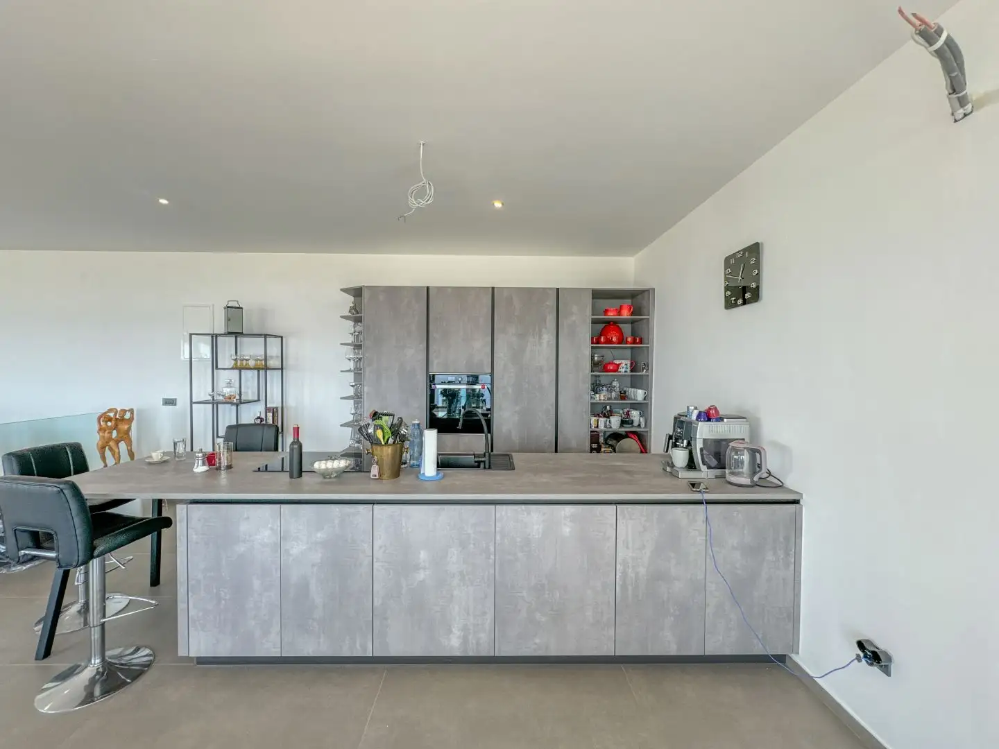 Вилла находится в первоклассном месте над Криквенницей, предлагая панорамный вид на море и окружающие острова. Она состоит из трех этажей, с входом на верхнем этаже, где вы найдете просторную открытую гостиную, кухню и столовую общей площадью 66 кв.м, небольшой санузел и идеальную террасу площадью 30 кв.м, выходящую на юг. Яркой особенностью является стеклянная стена, которая занимает около 70% внешней стены, позволяя обильному естественному свету проникать внутрь. Стекло оснащено системой контроля солнечной радиации, что свидетельствует о внимании к деталям со стороны инвестора.