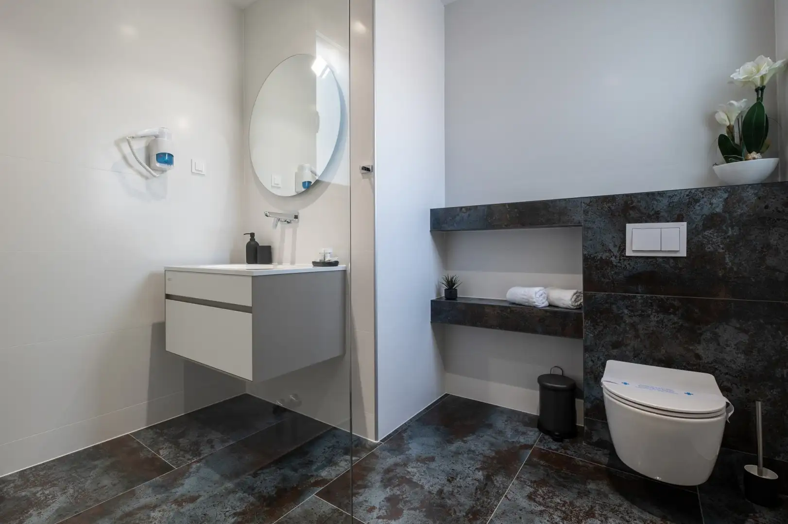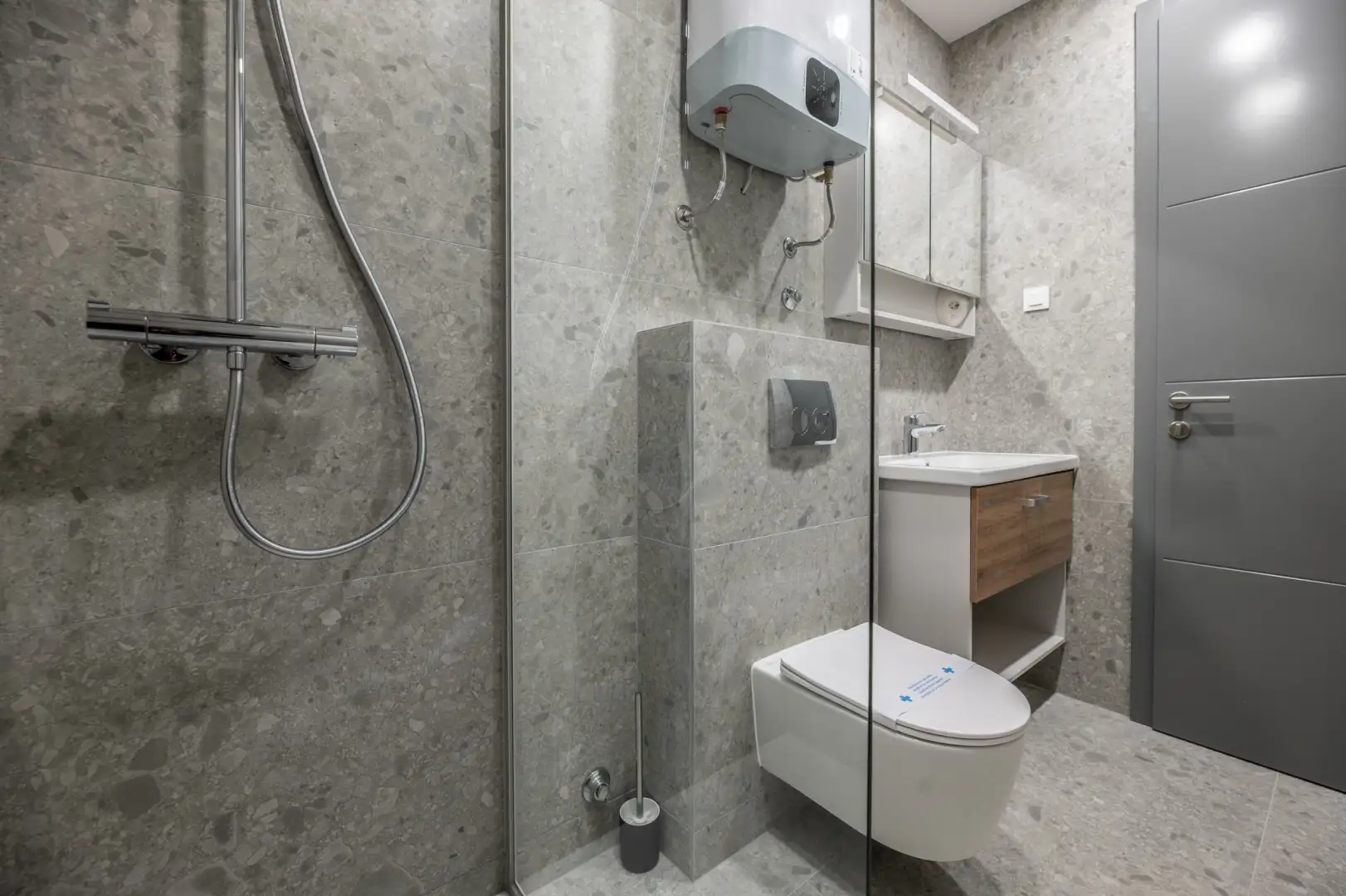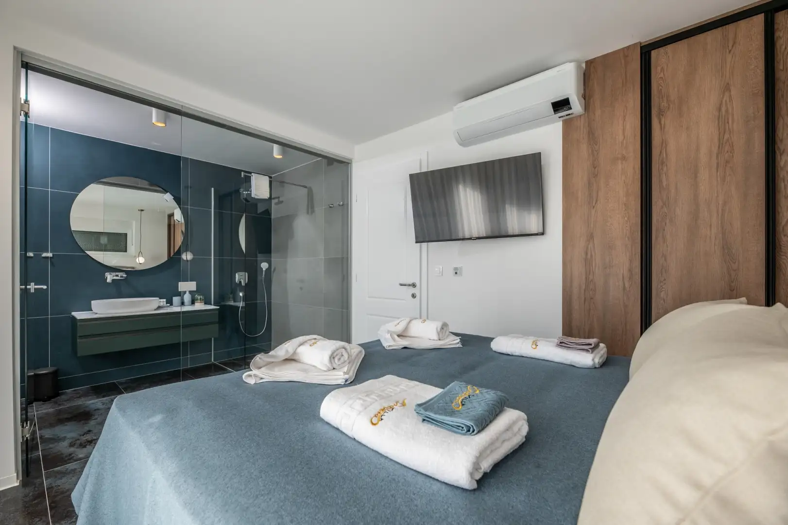 Внутри вилла отделана на высоком уровне, с акцентом на роскошь и минималистичную элегантность. Естественный свет наполняет пространство, и везде использованы качественные материалы, включая теплый пол, дизайнерскую сантехнику, кондиционеры, смарт-ТВ, надежные сейфы и высокоскоростной интернет.