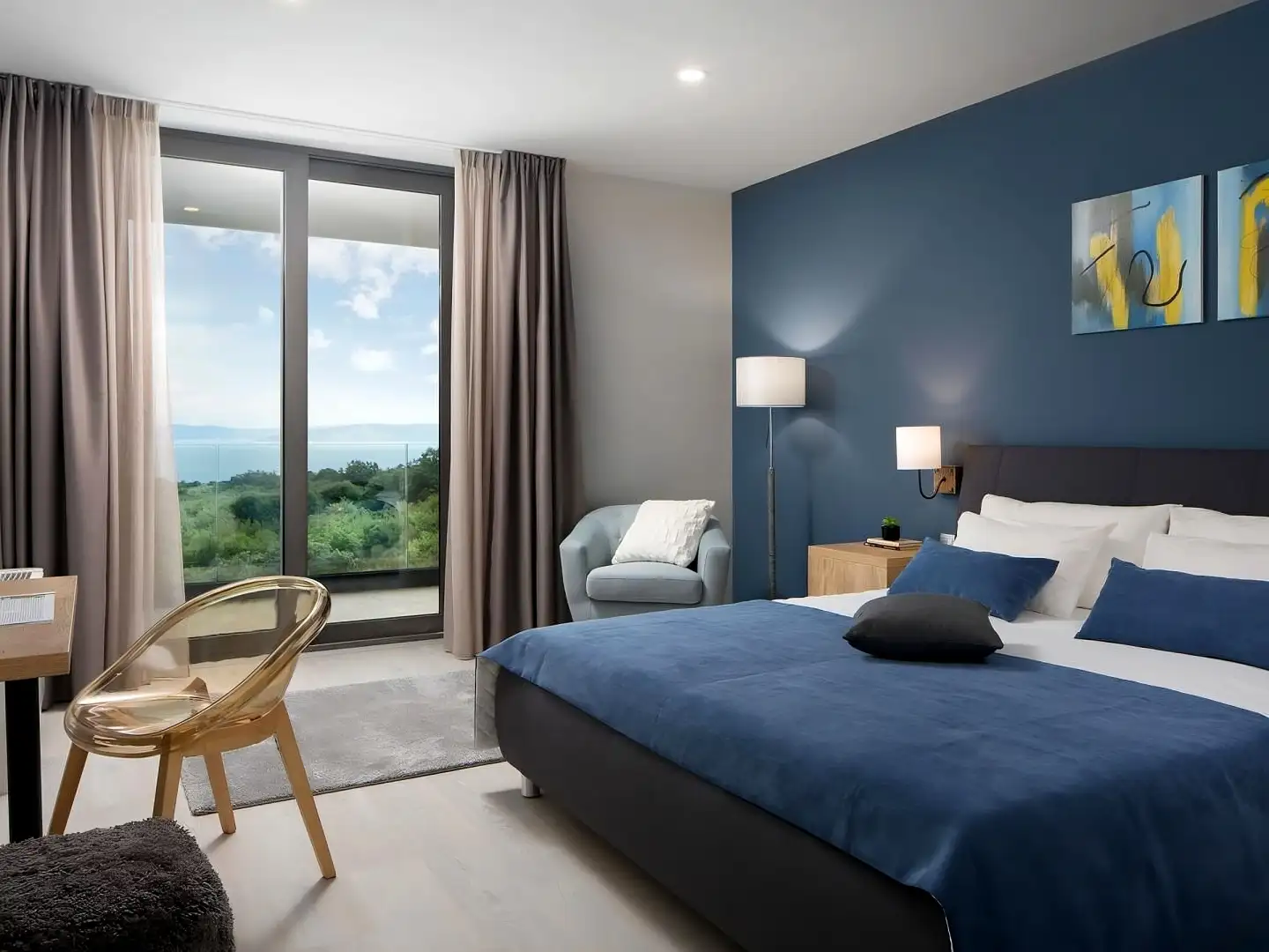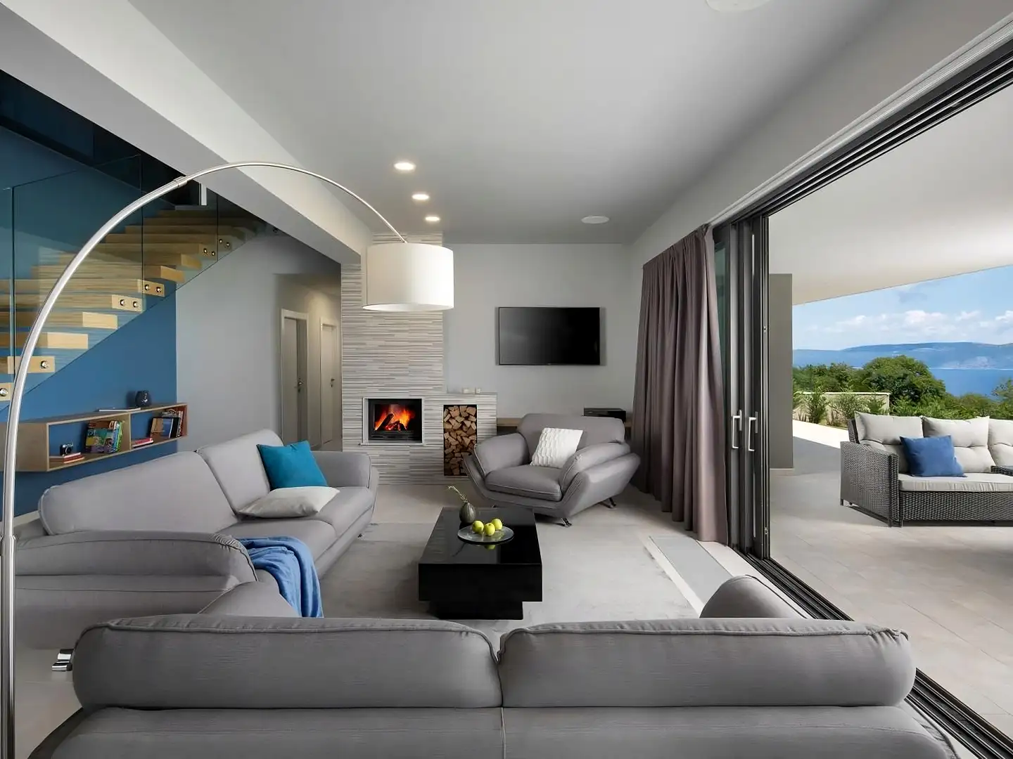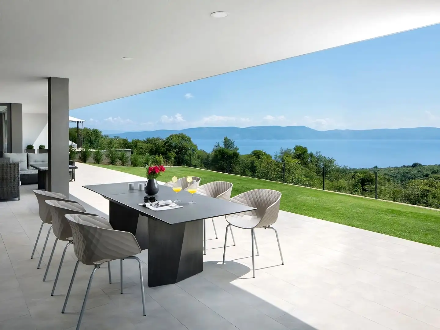 Сразу за пределами Рабаца и Лабина, в спокойном прибрежном поселке, эта современная вилла на продажу предлагает непрерывные панорамные виды, простирающиеся на горный массив Уčka, город Риека, острова Кварнера и сверкающее Адриатическое море. Ее возвышенное положение обеспечивает захватывающие виды с каждого угла.